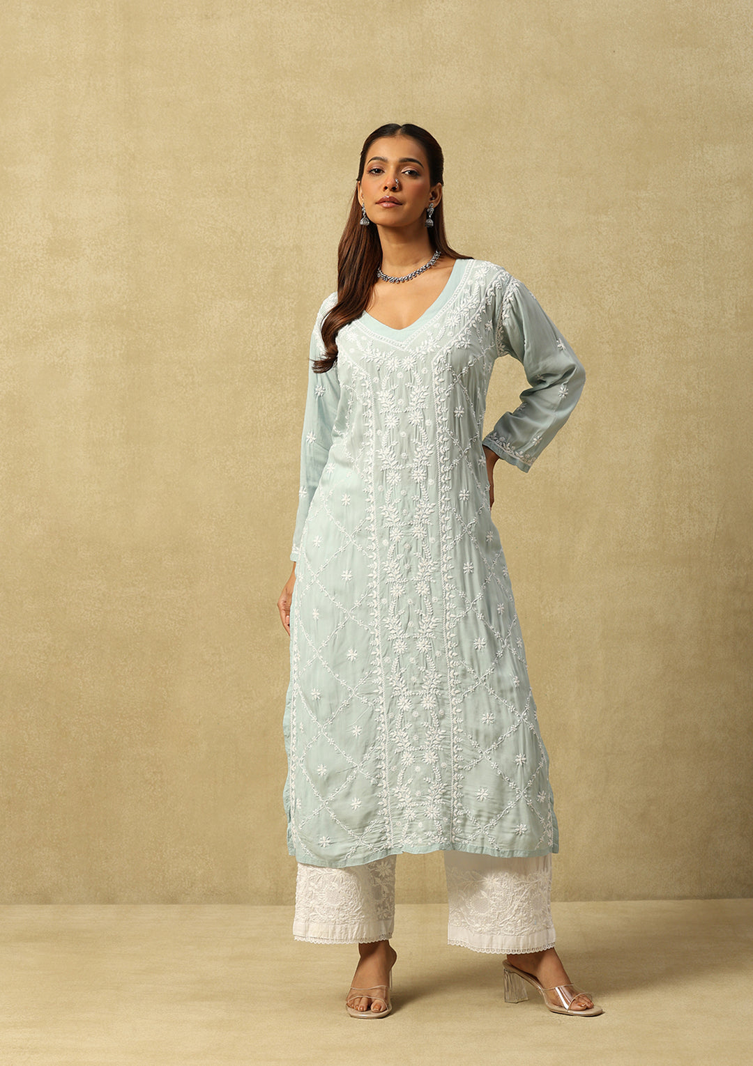 HOC Fenal Chikankari Modal Straight Kurta - White