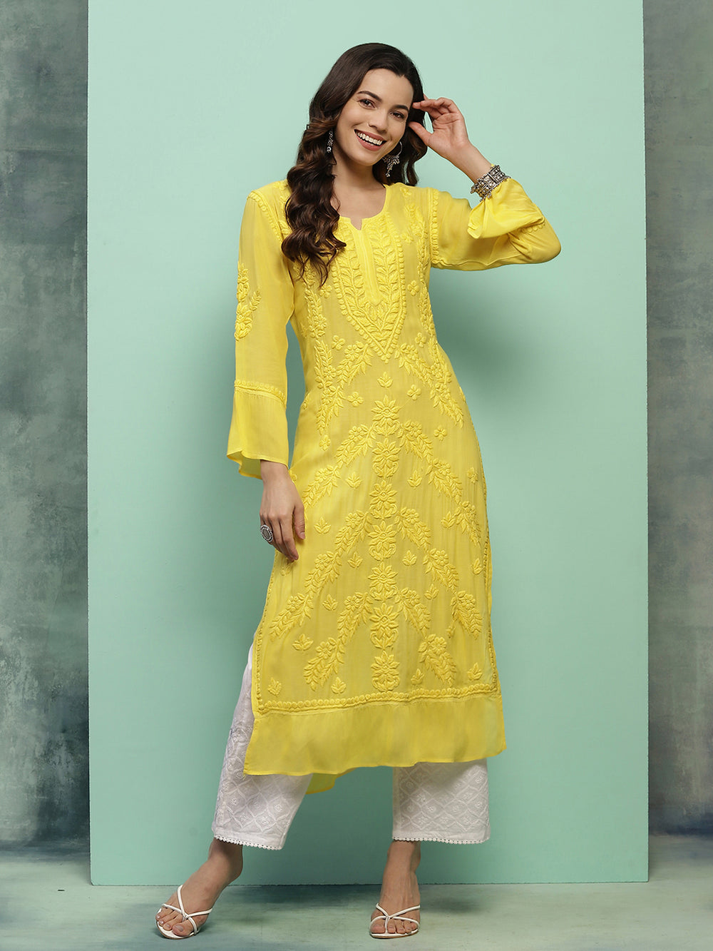 HOC Muslin Chikankari Ombre Girl's 2 PC A-Line Kurta Set-Peach Ombre