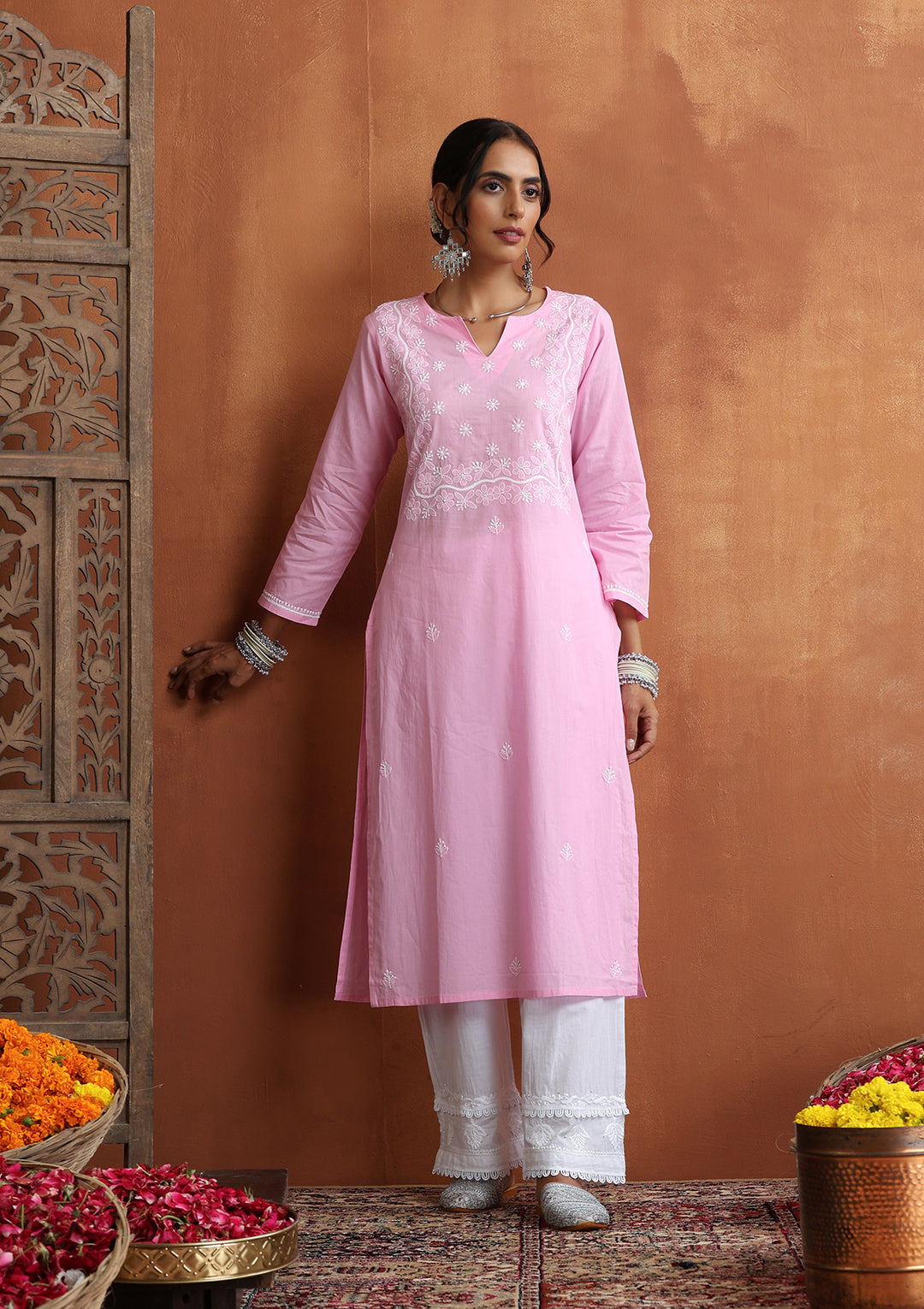 2. How to accessorize a festive chikankari kurta?