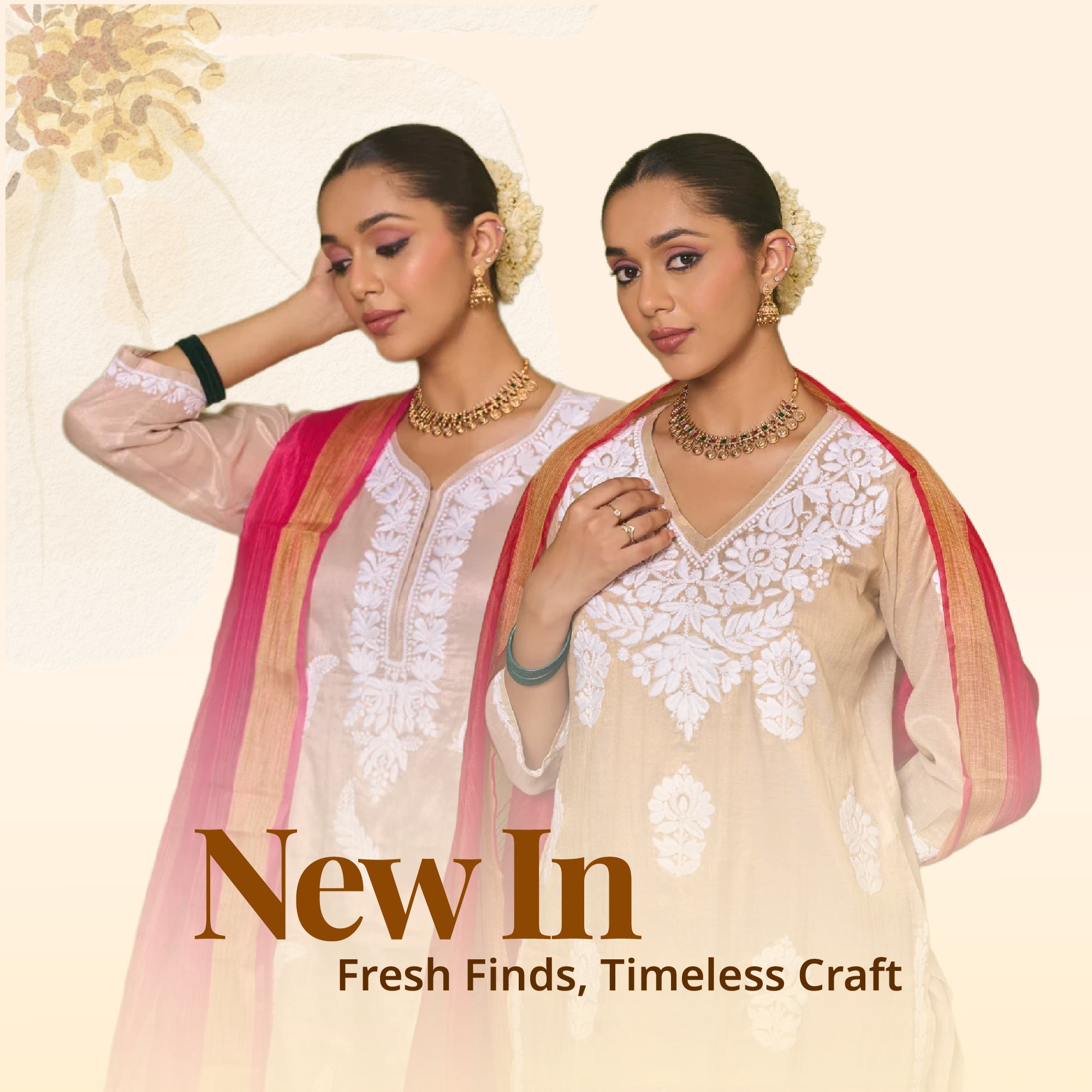 HOC Kasmira Aari Embroidered Wool Short Kurta-Beige