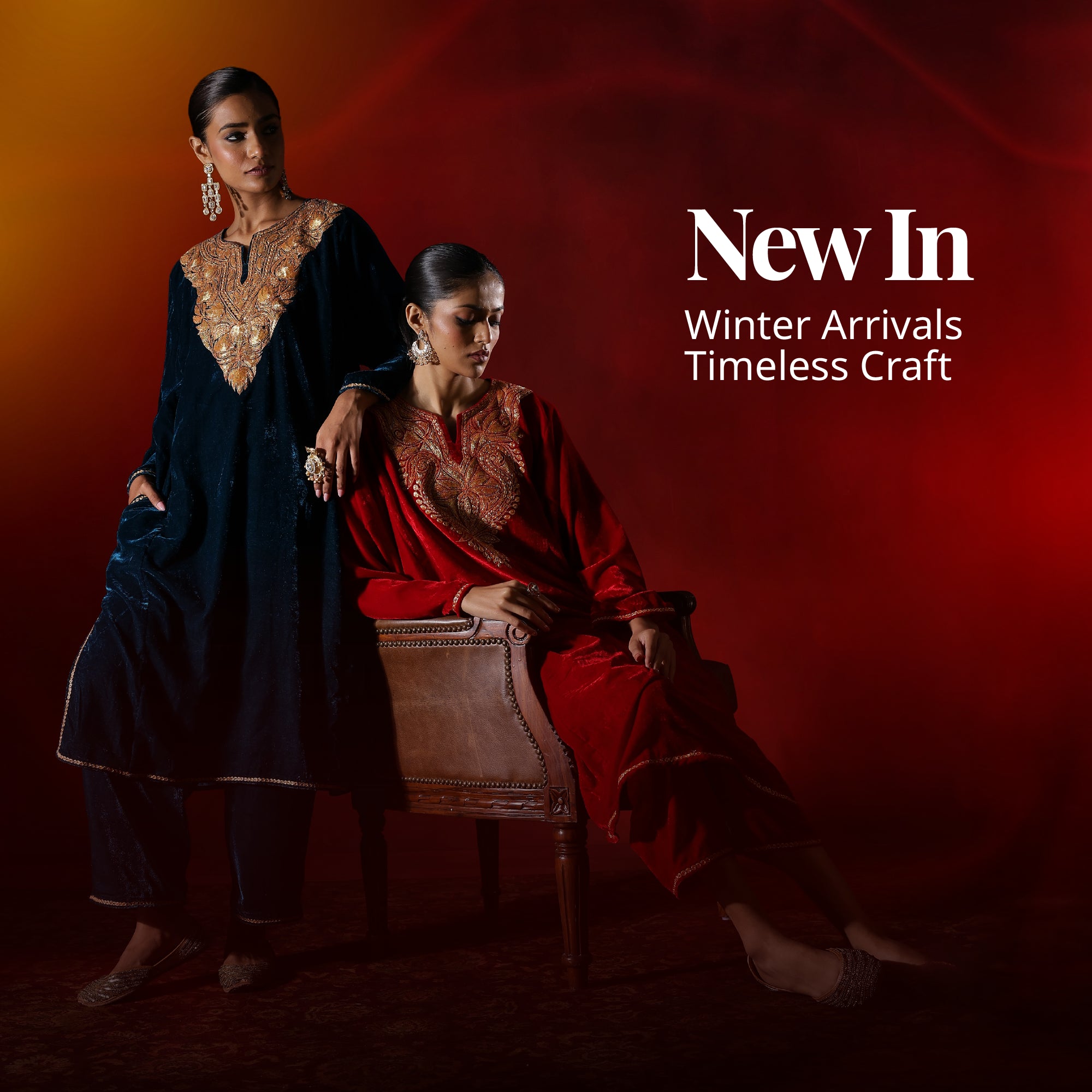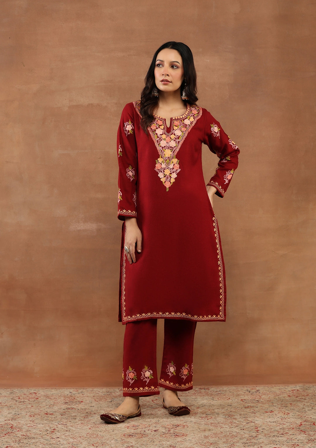 HOC Kashmiri Velvet Tilla Embroidered Solid Women's 2 PC Phiran Set -Maroon