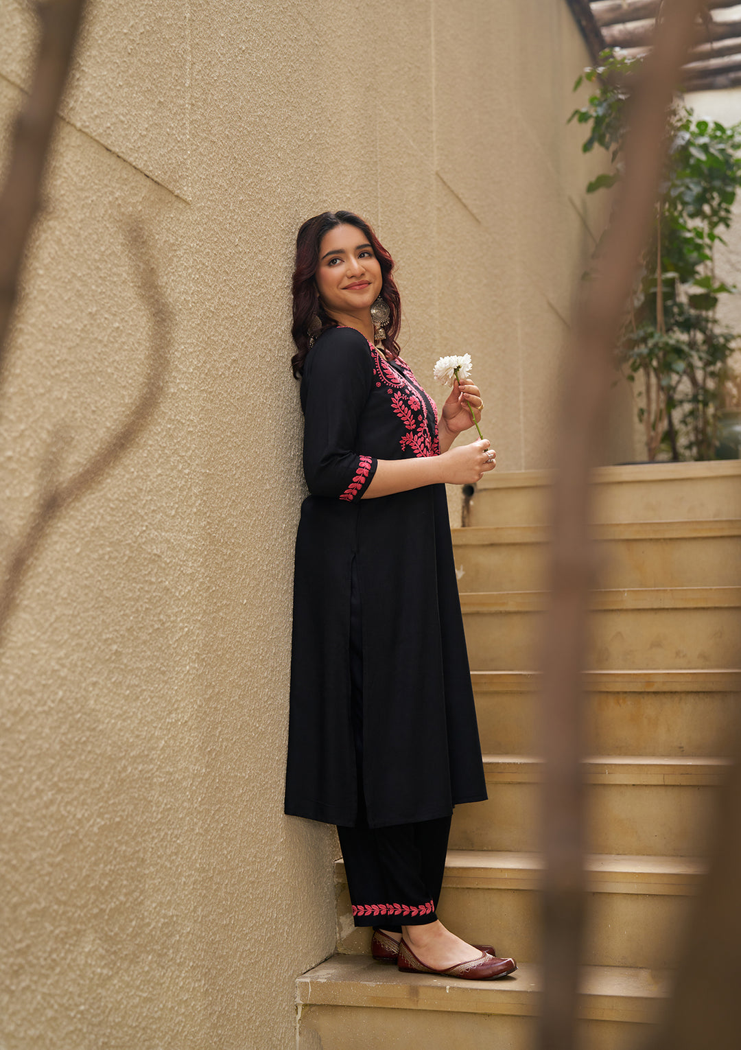 HOC Rubaab Chikankari Rayon Straight Kurta Set