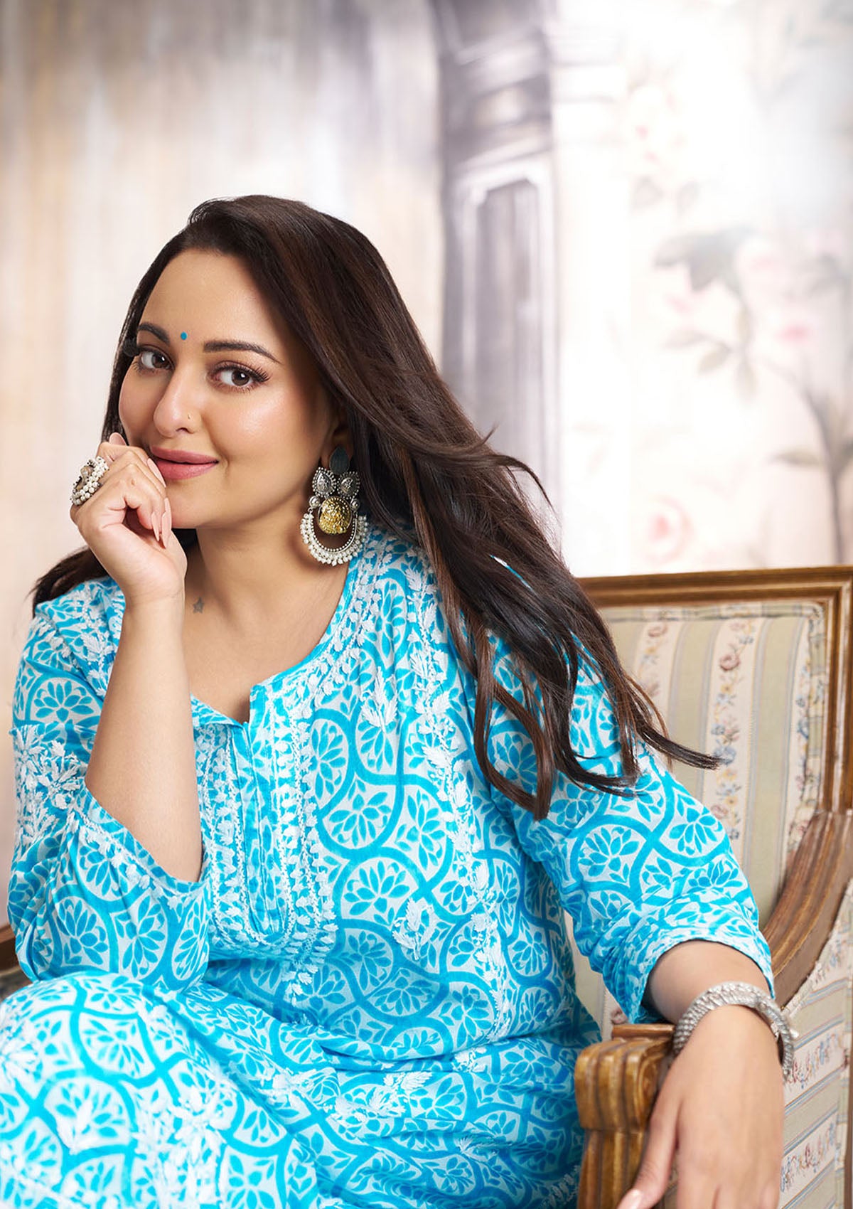 Sona Chikankari Printed Mulmul Straight Kurta