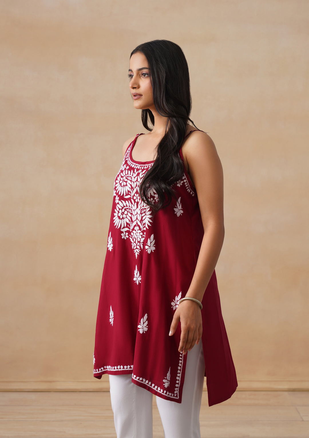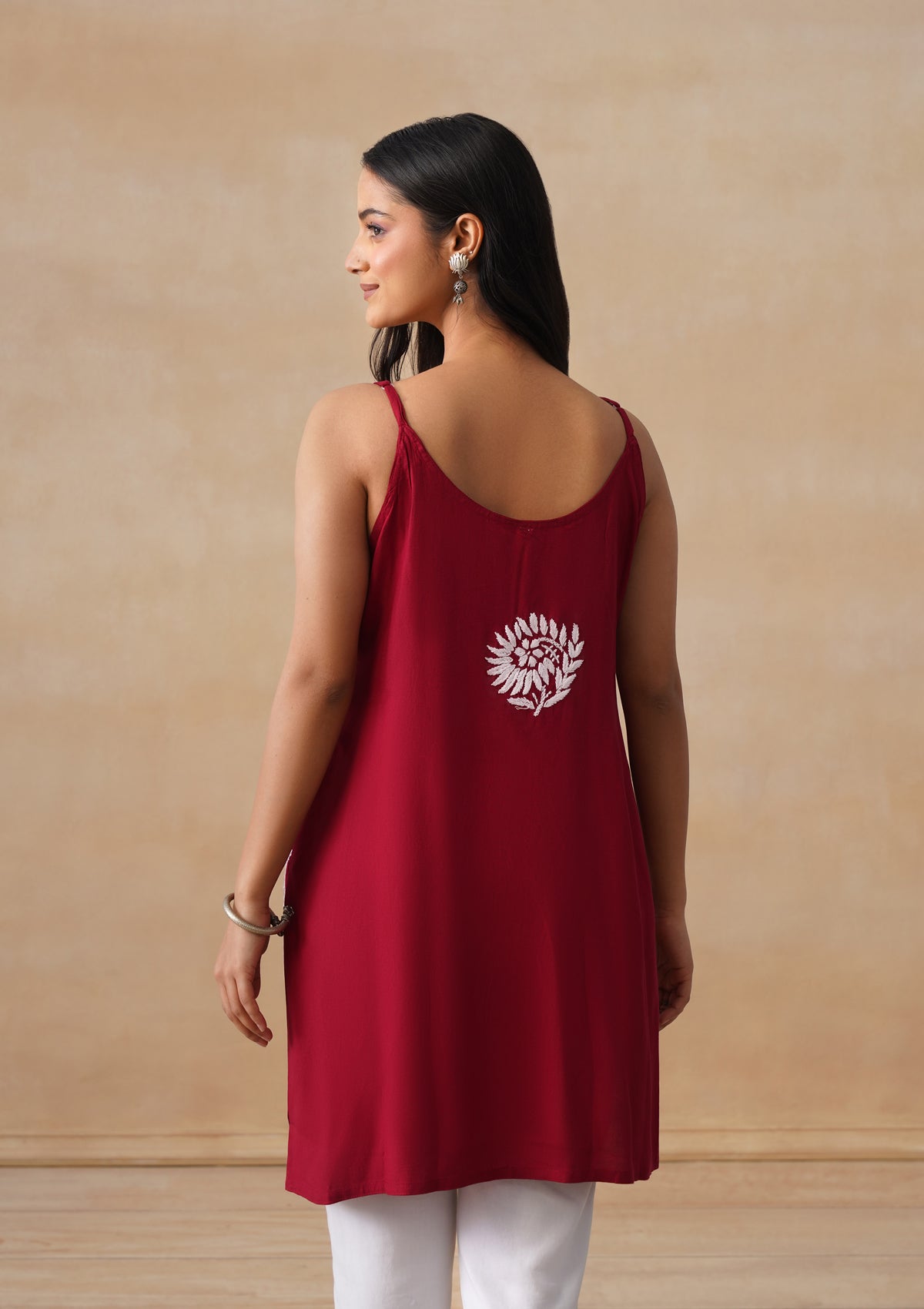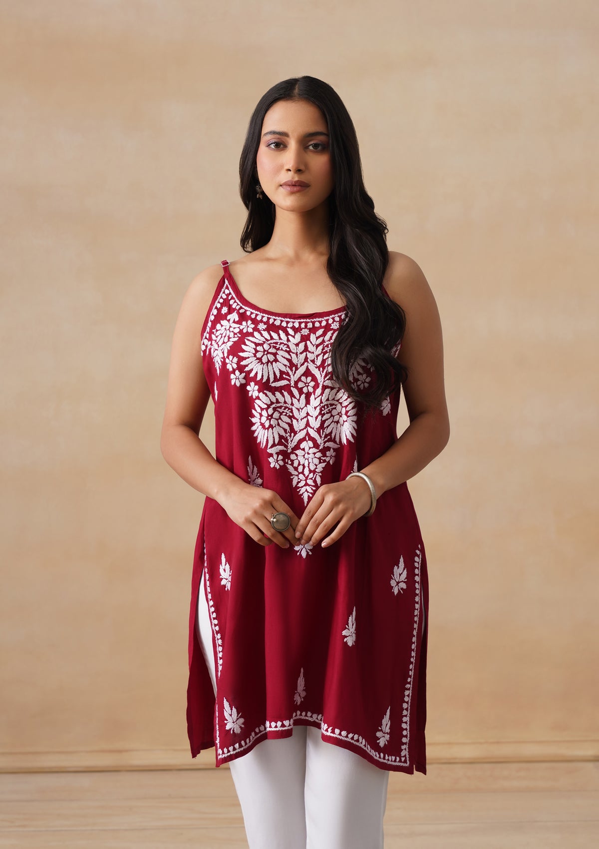 HOC Rayon Chikankari Solid Women's Short Kurta - Maroon