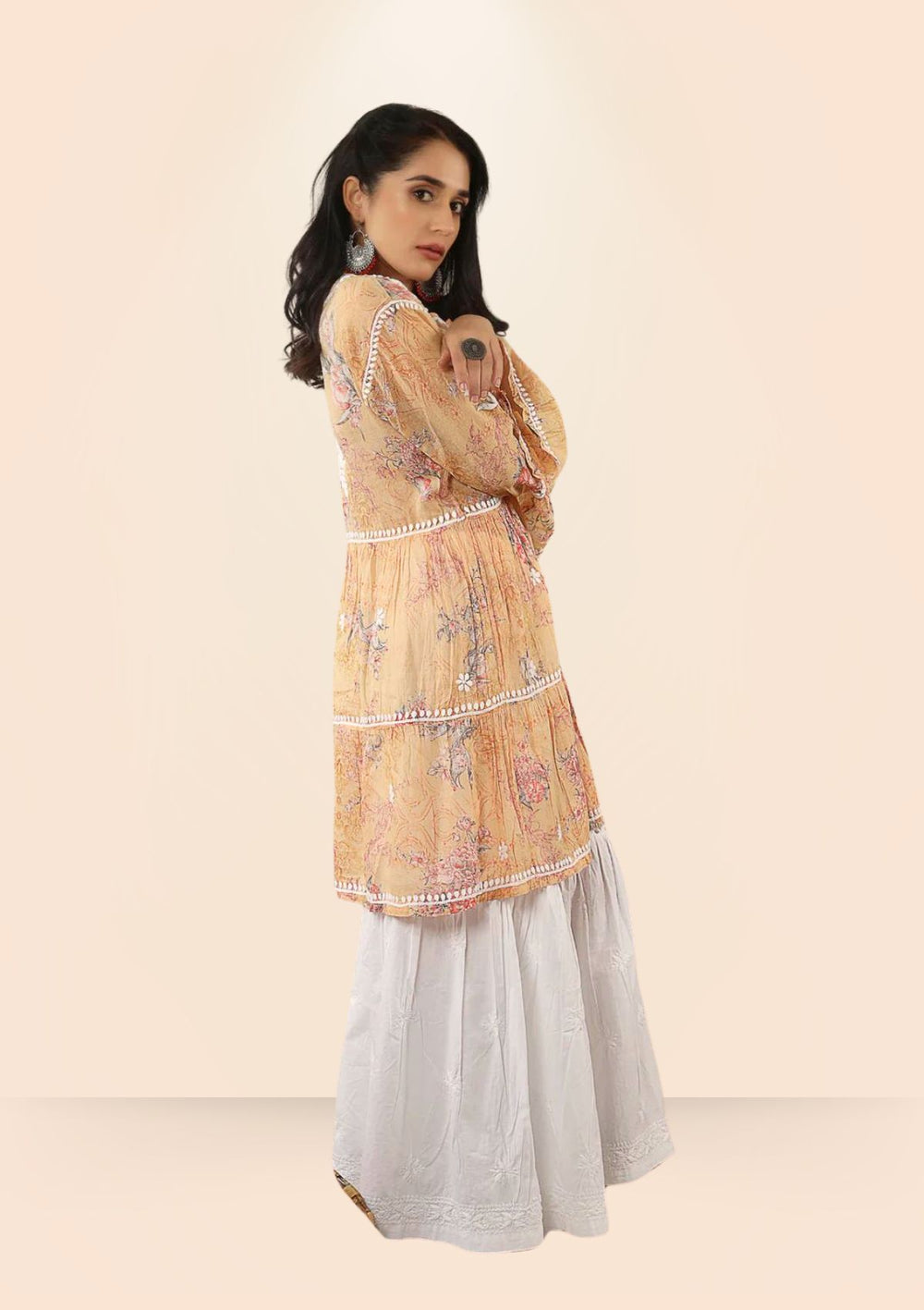 HOC Jugni Chikankari Printed Mulmul Straight Kurta