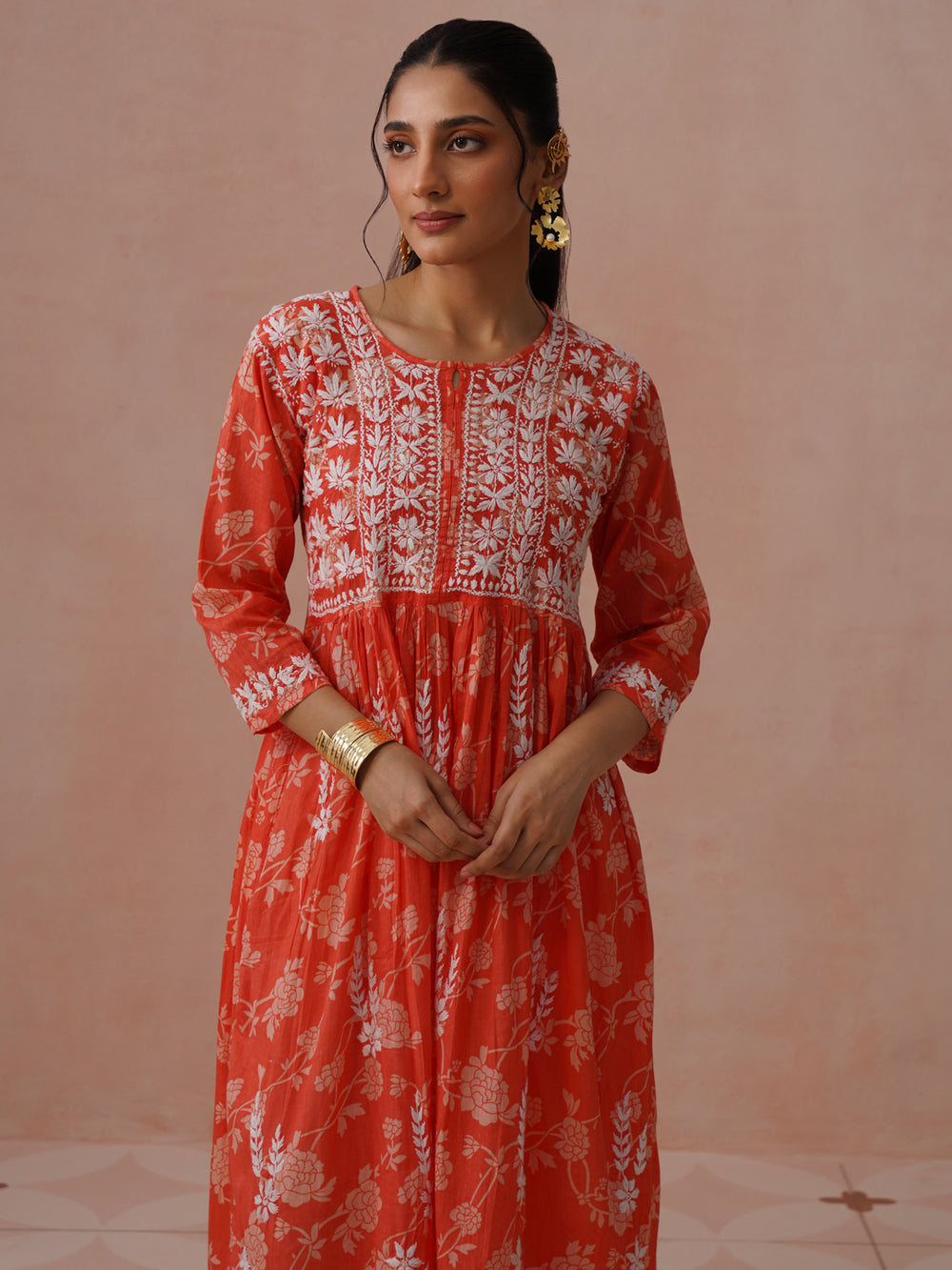 Buy Orange Chikankari Kurtis For Women at House Of Chikankari