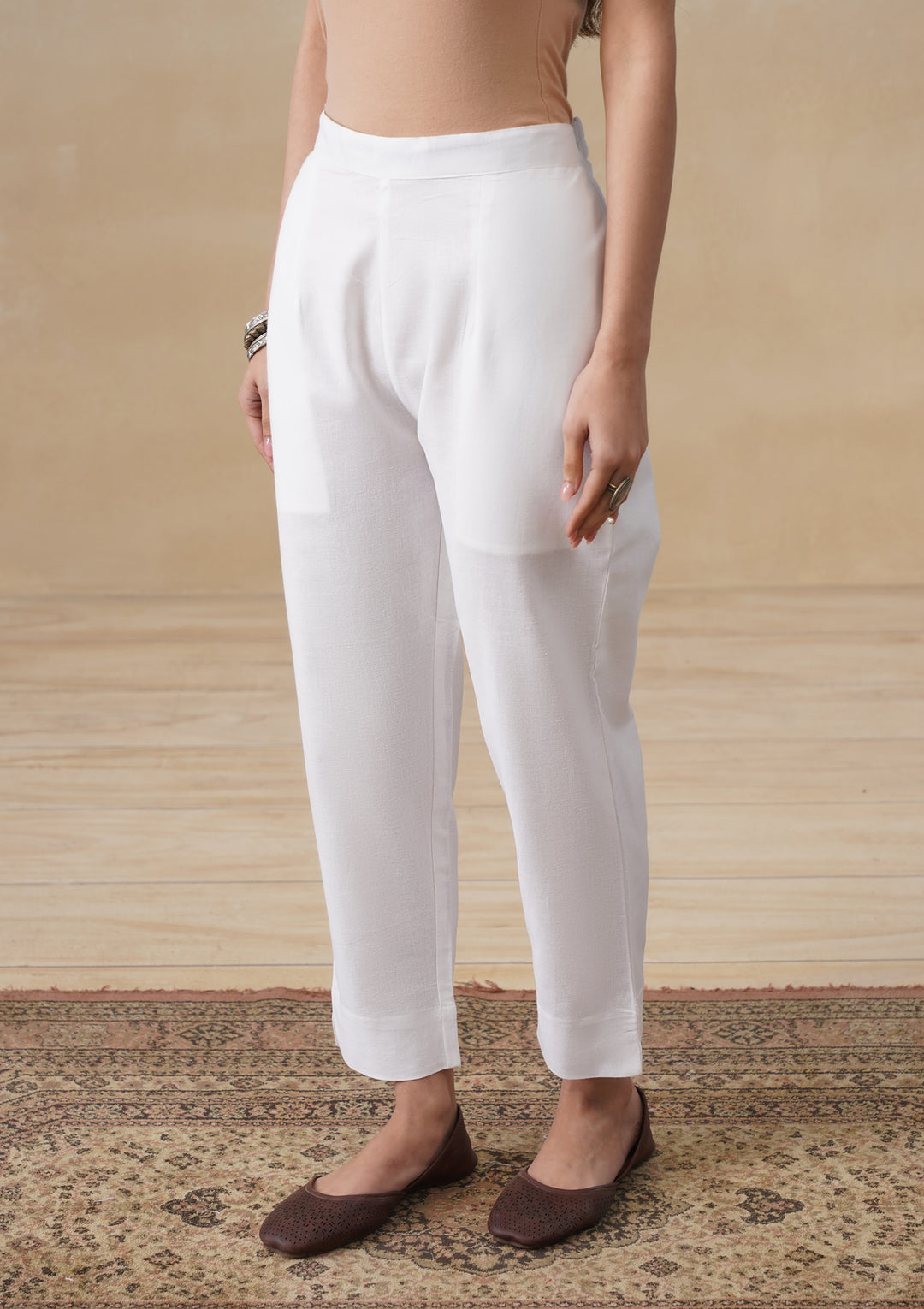HOC Cotton Loom Women's Solid Tapered Pant - White