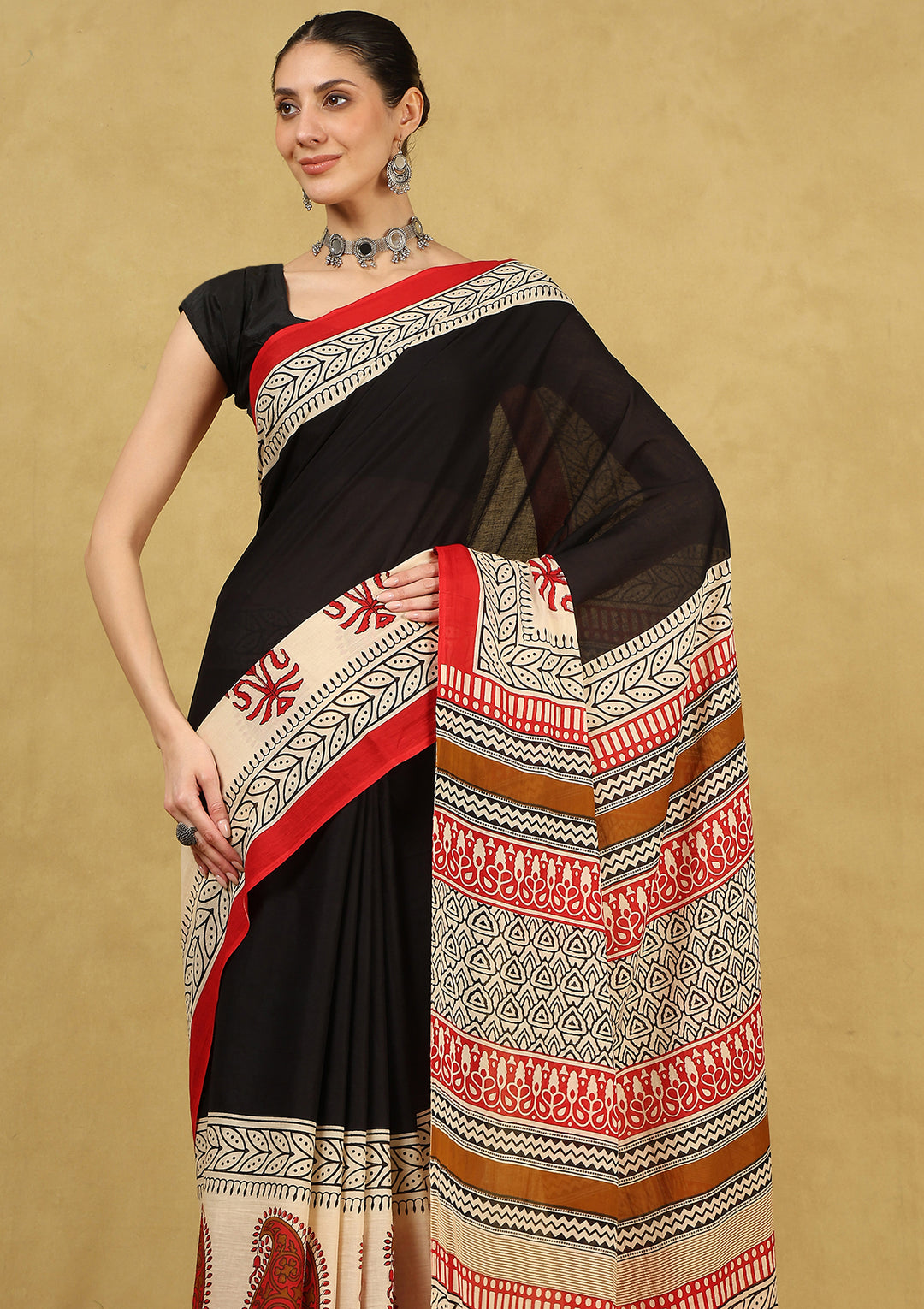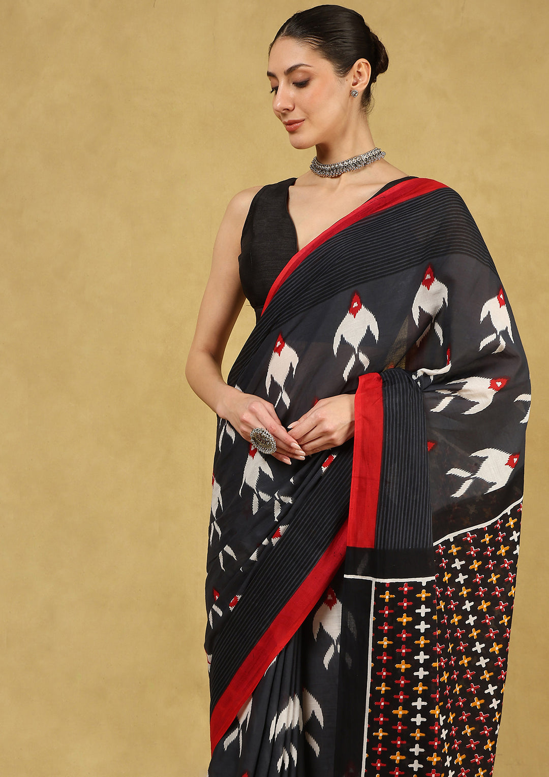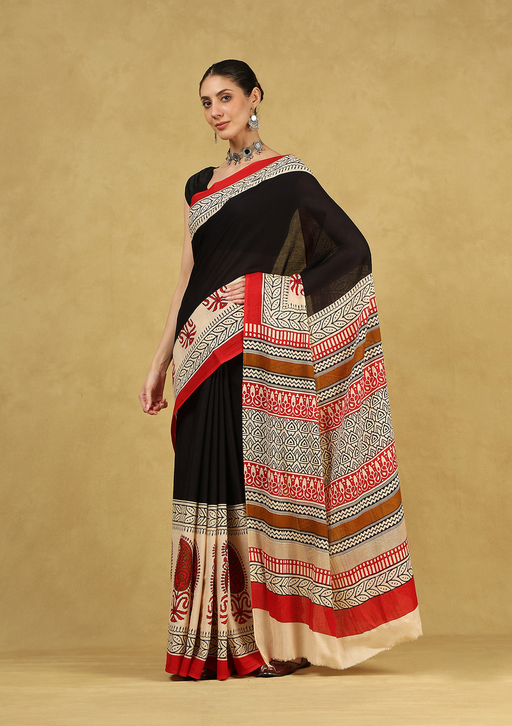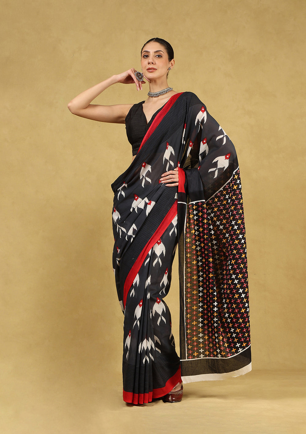 HOC Hand Embellished Muslin Printed Women's 3 PC Long Kurta Set with Dupatta - Black