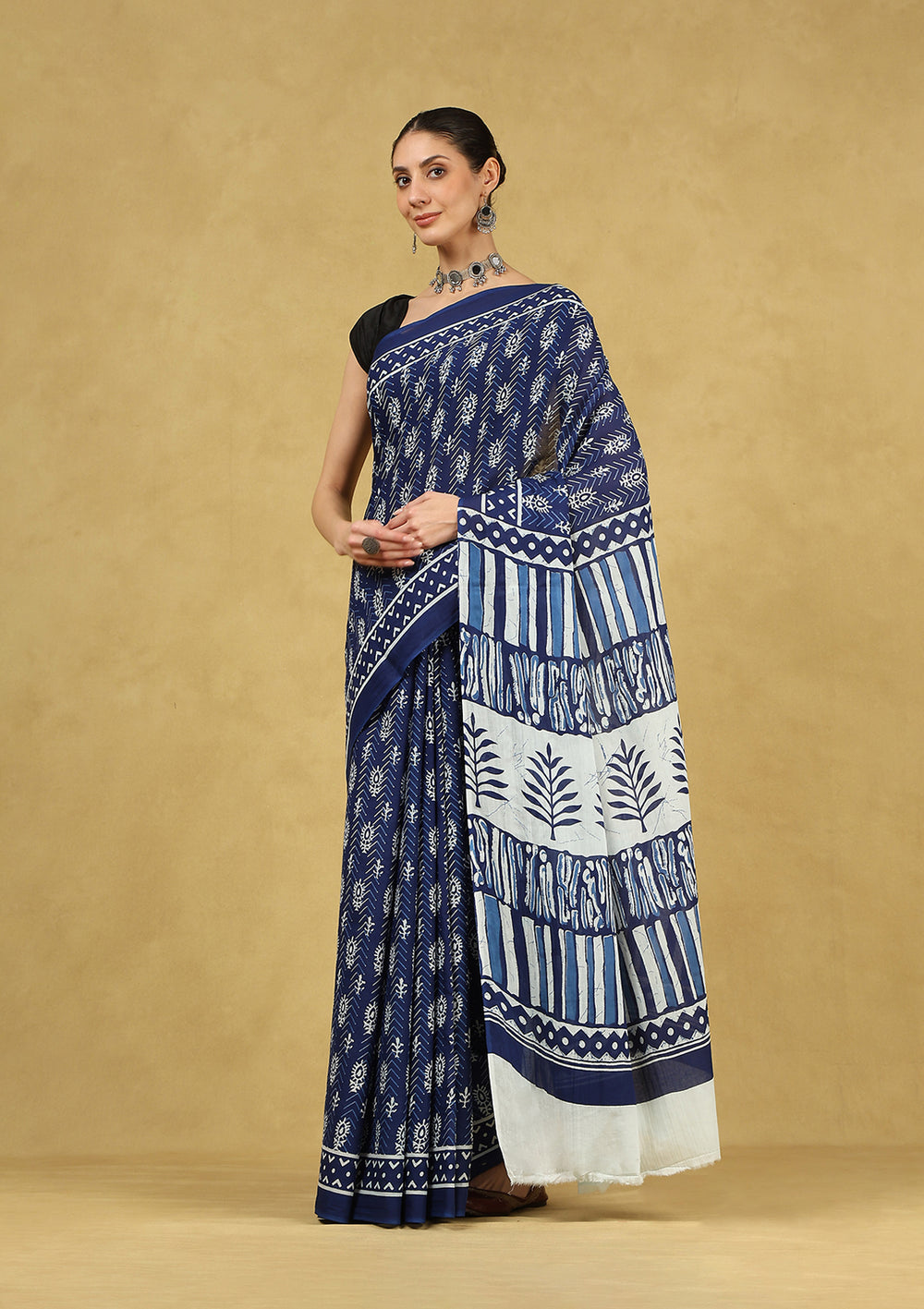HOC Tamara Mulmul Chikankari Printed Women's Straight Kurta - Navy Blue