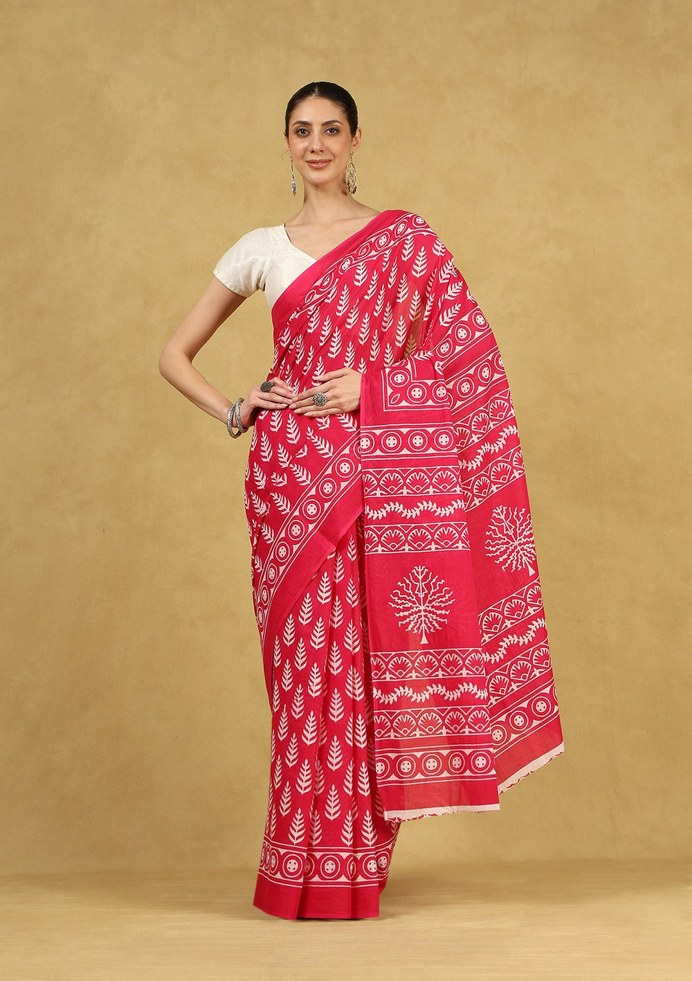 HOC Tamara Mulmul Chikankari Printed Women's Straight Kurta - Red