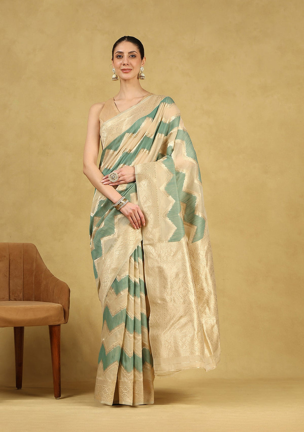 HOC Hand Embellished Cambric Cotton Printed Women's 3 PC Long Kurta Set with Dupatta - Ivory