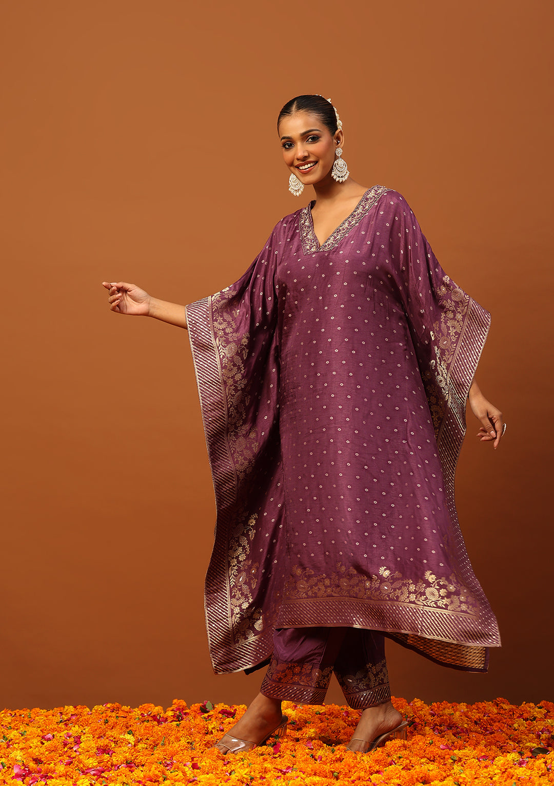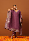 HOC Jacquard Silk Hand Embellished With Zari Women's Kaftan Set With Inner - Purple