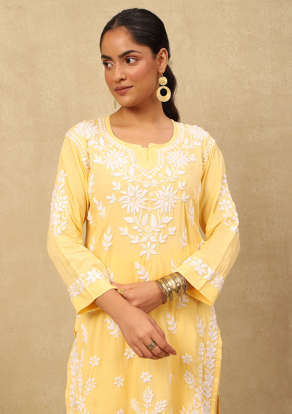 HOC Bushra Chikankari Modal Straight Kurta Set