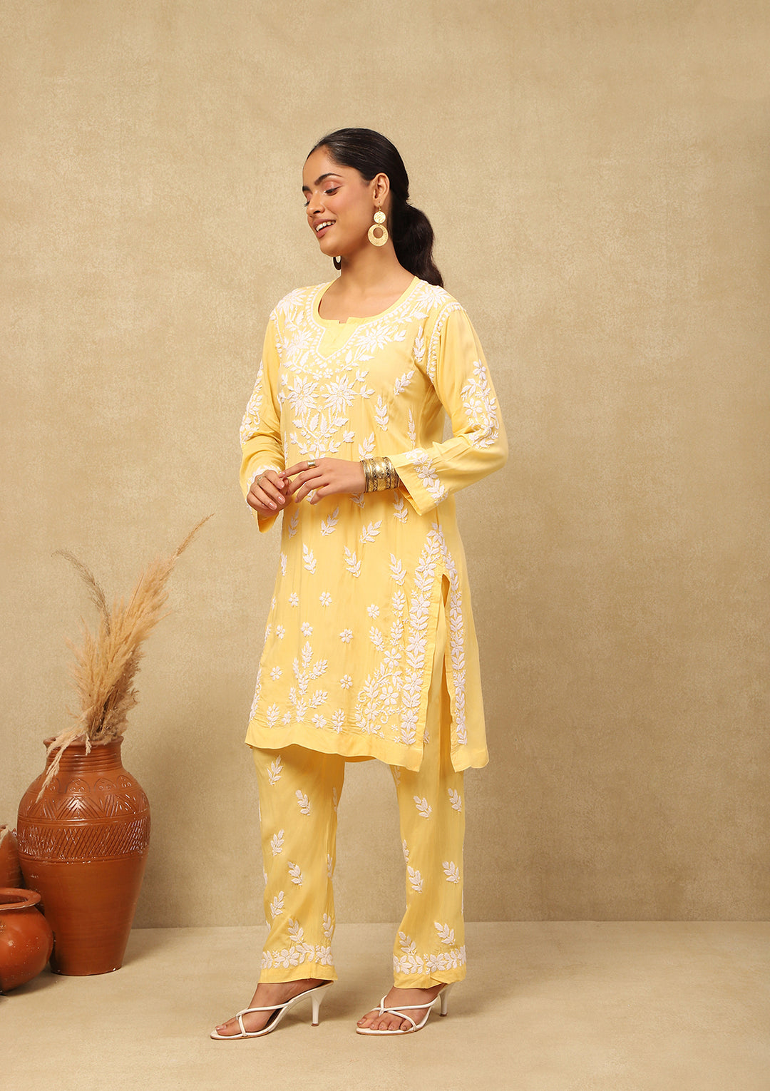 HOC Bushra Chikankari Modal Straight Kurta Set