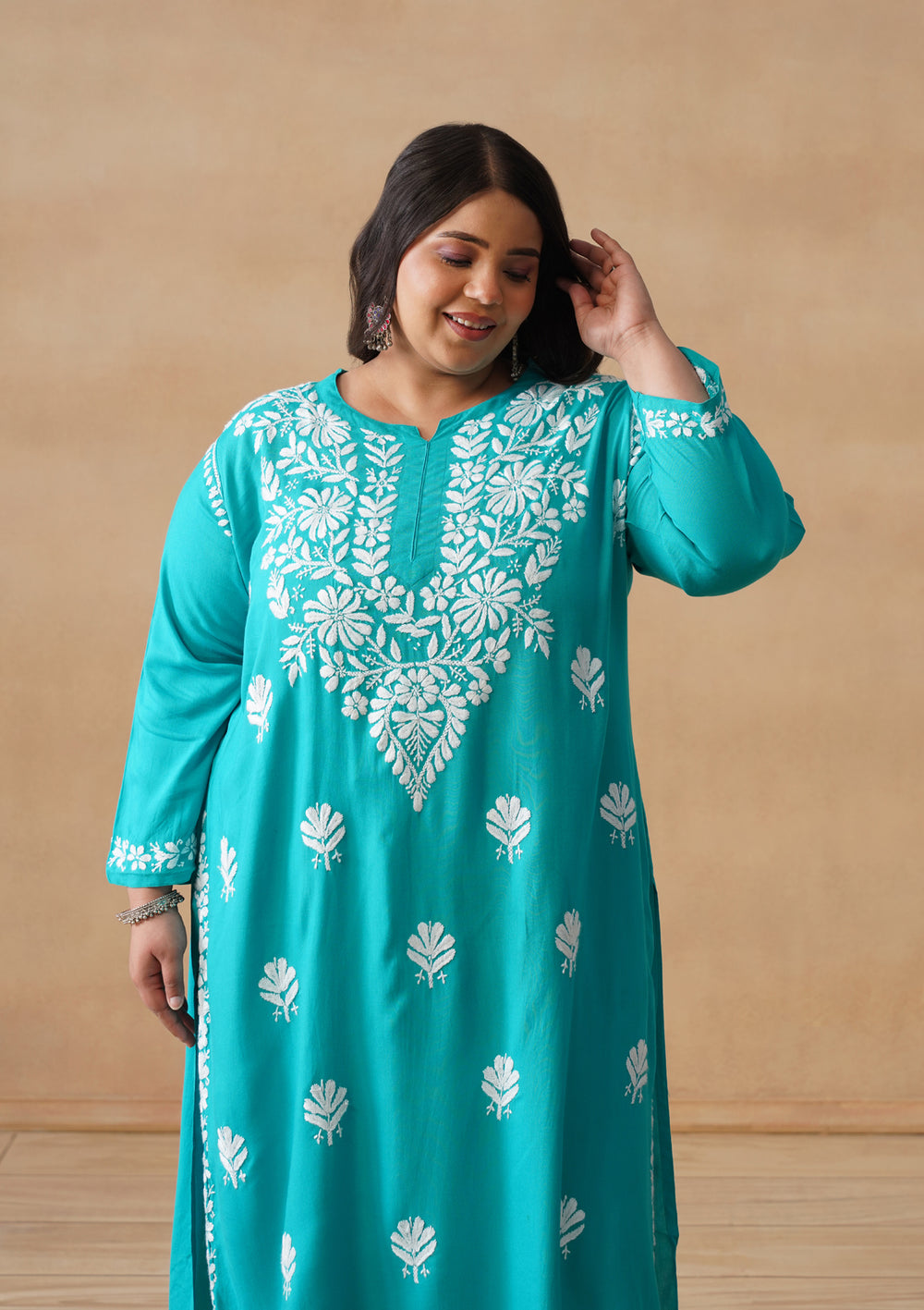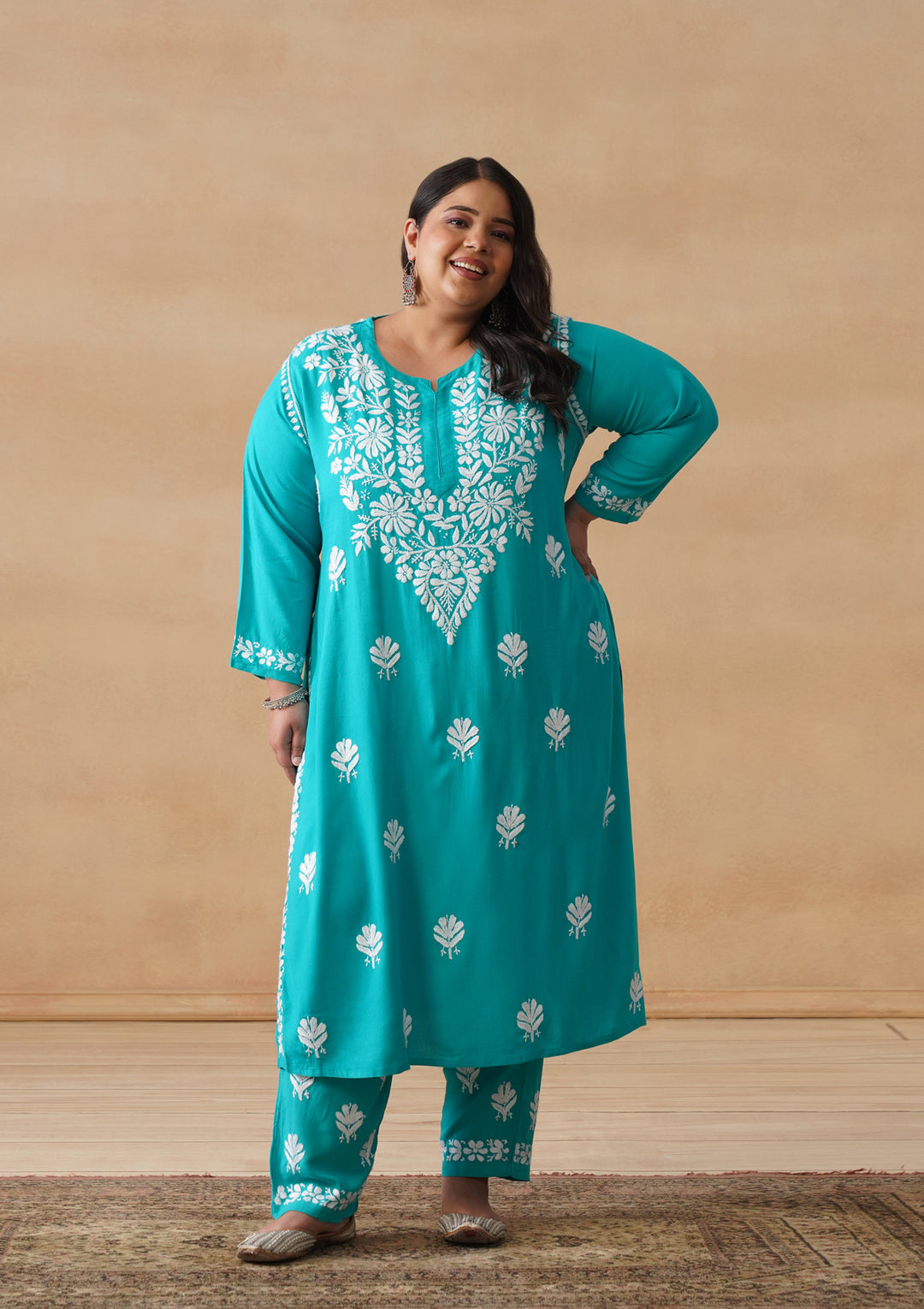 - Marya Chikankari Rayon Straight Kurta Set – Available in Teal Green