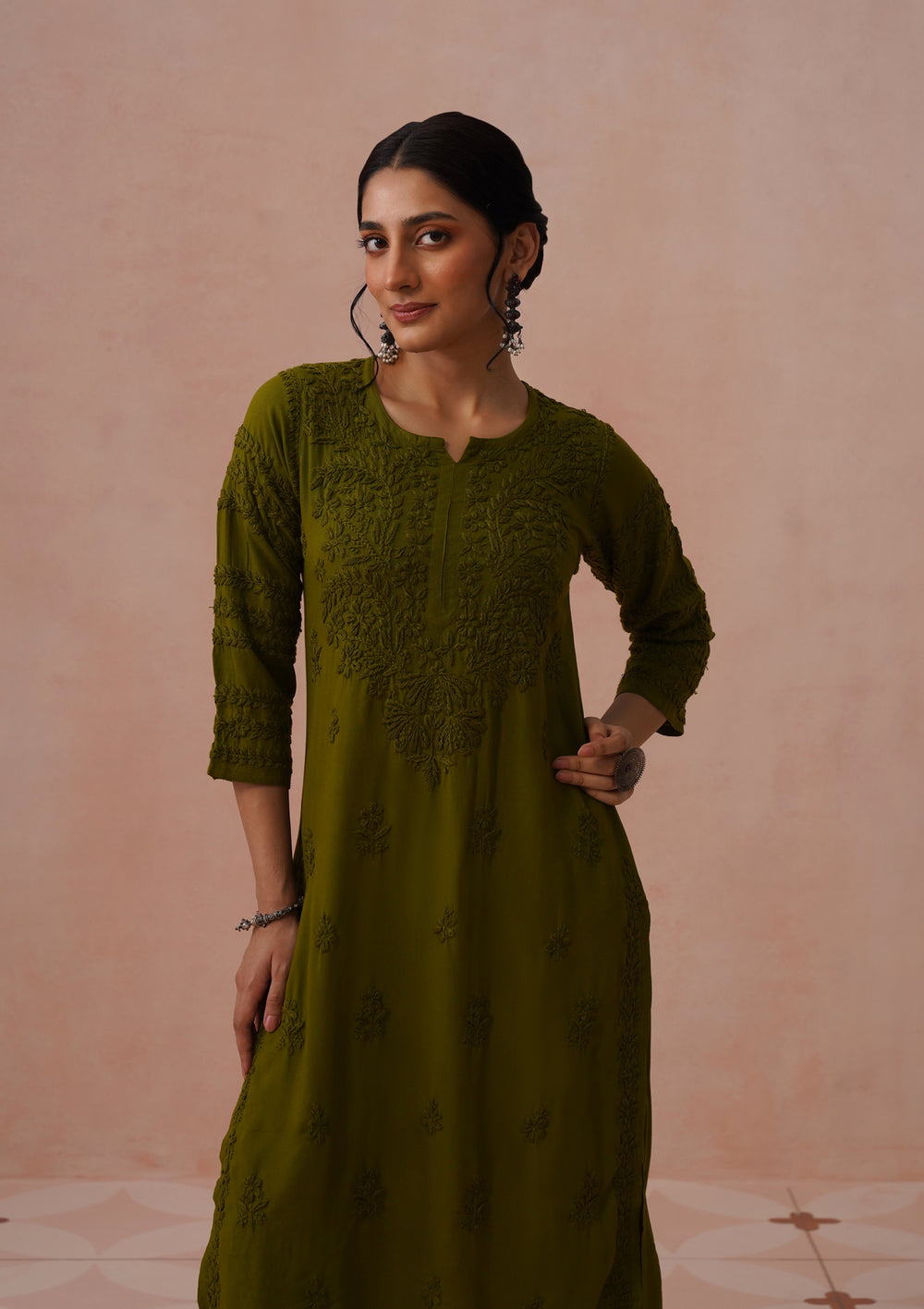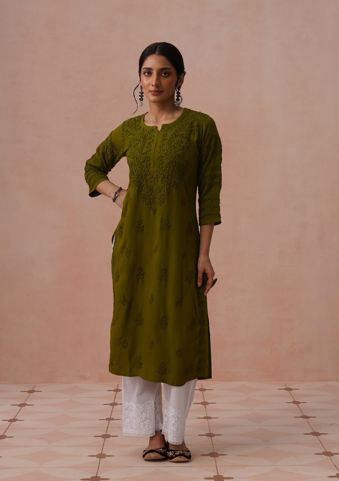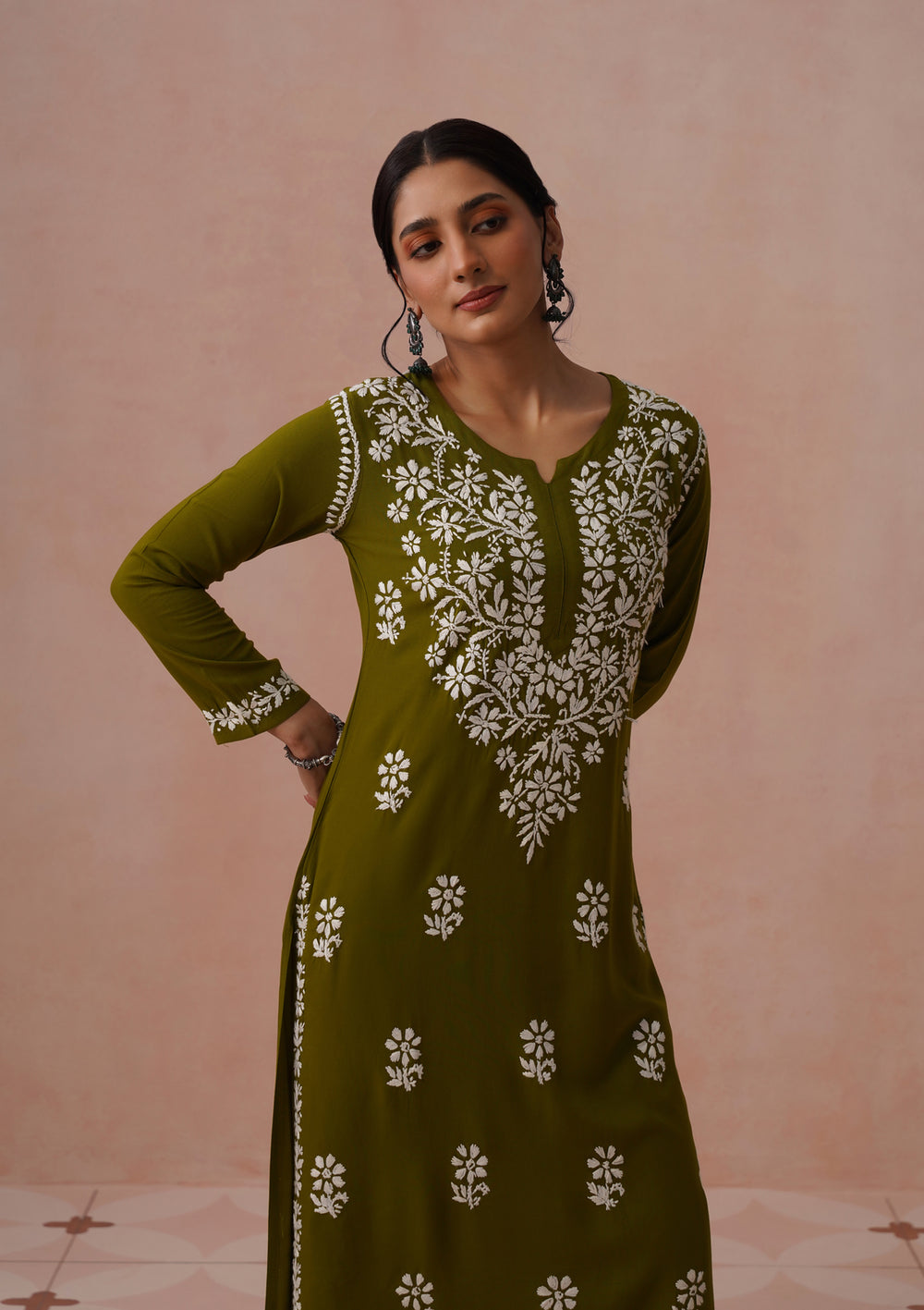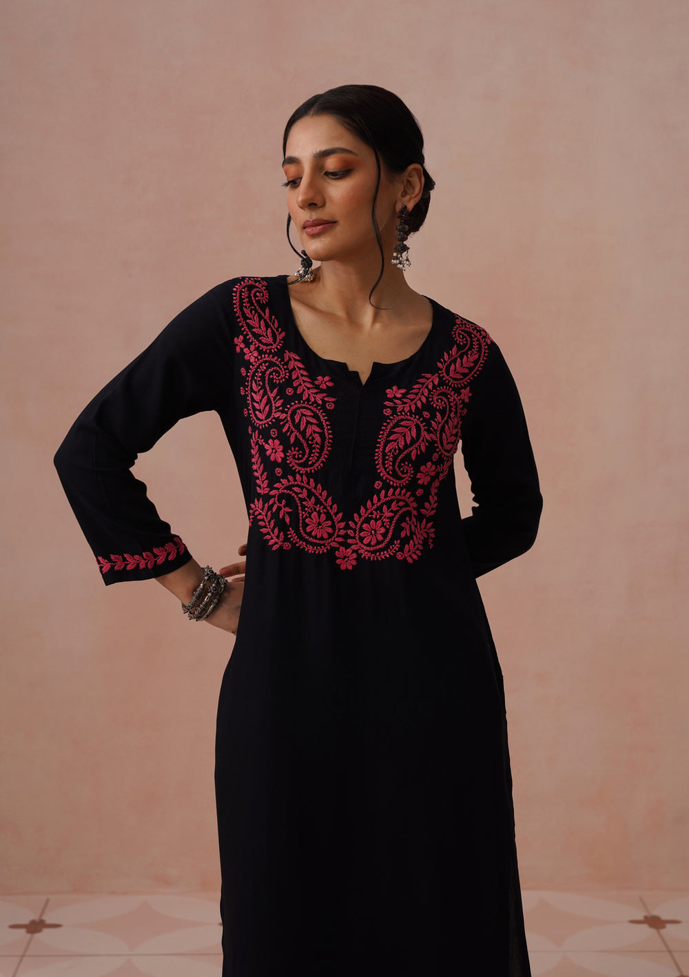 - Ruwa Chikankari Rayon Alpine Straight Kurta - Available in Black, Green, Navy Blue and Maroon
