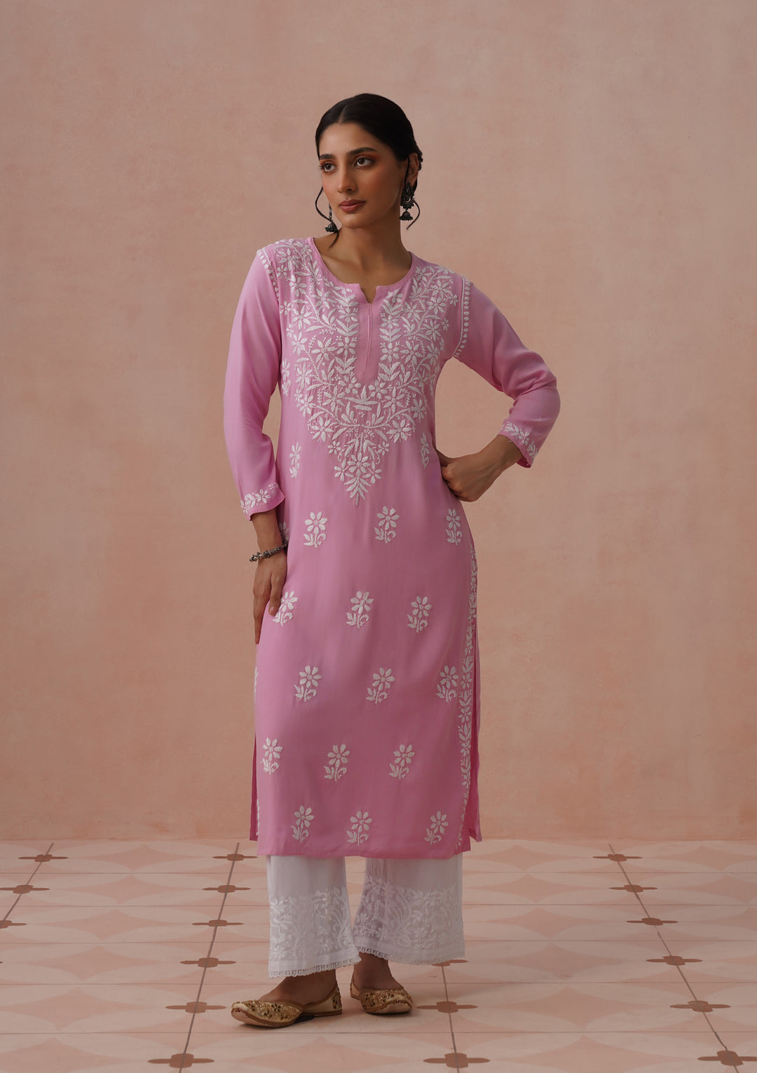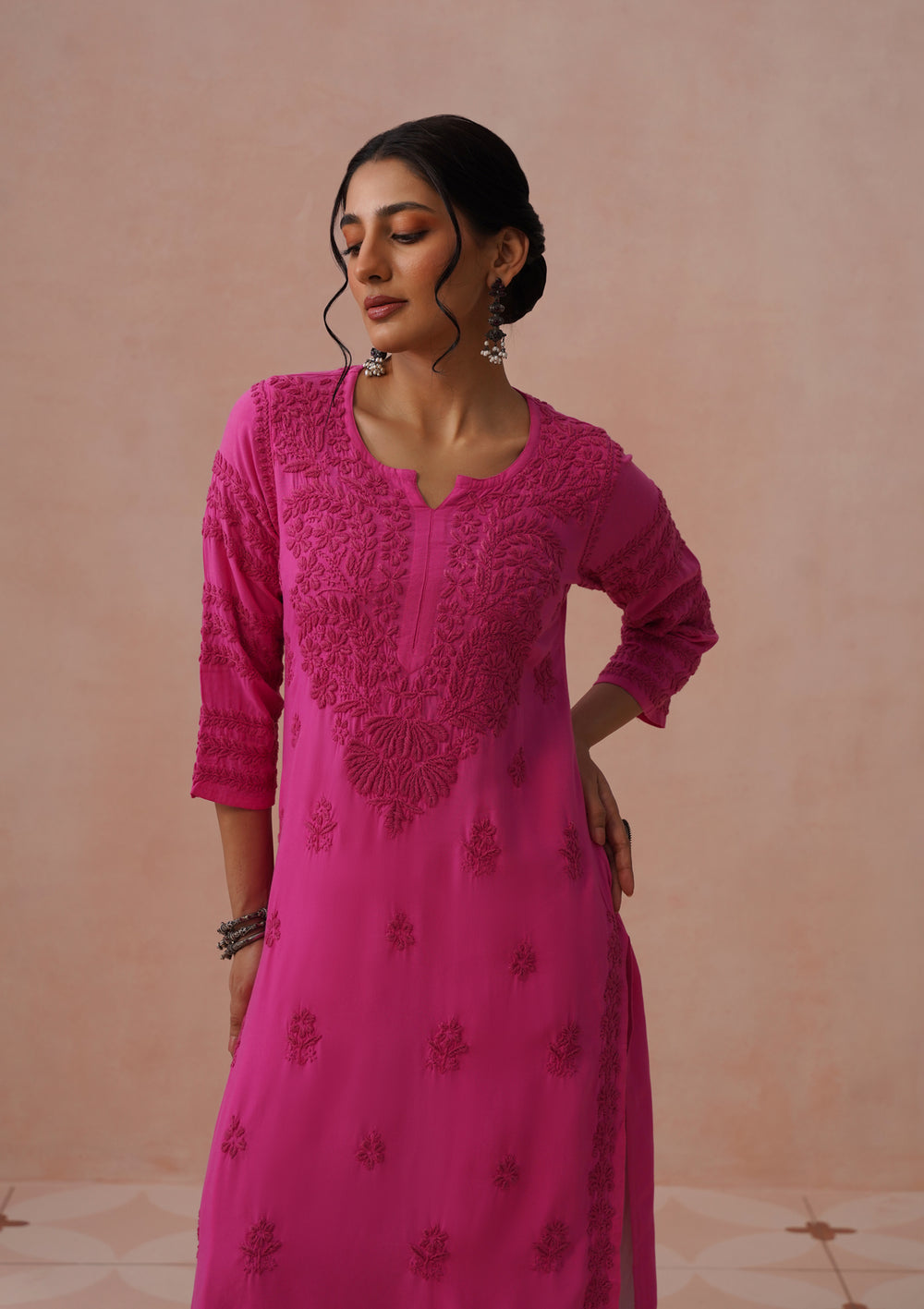 - Karima Chikankari Rayon Straight Kurta Set – Available in Pink and Navy blue