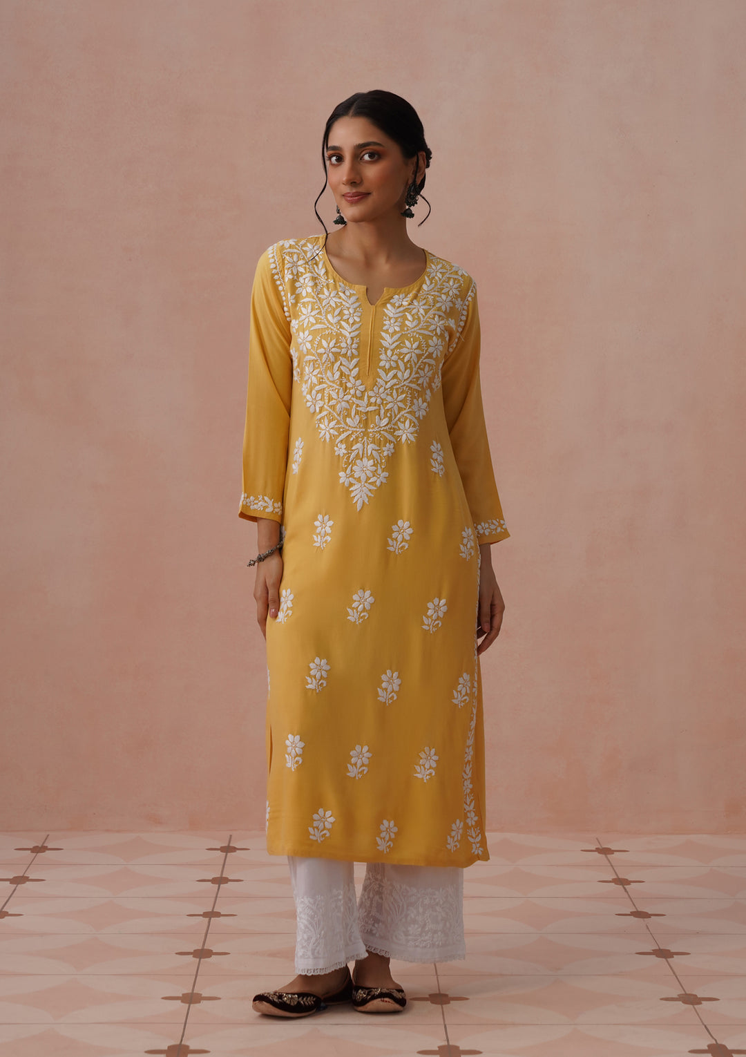 - Munya Chikankari Rayon Straight Kurta– Available in Yellow and Pink