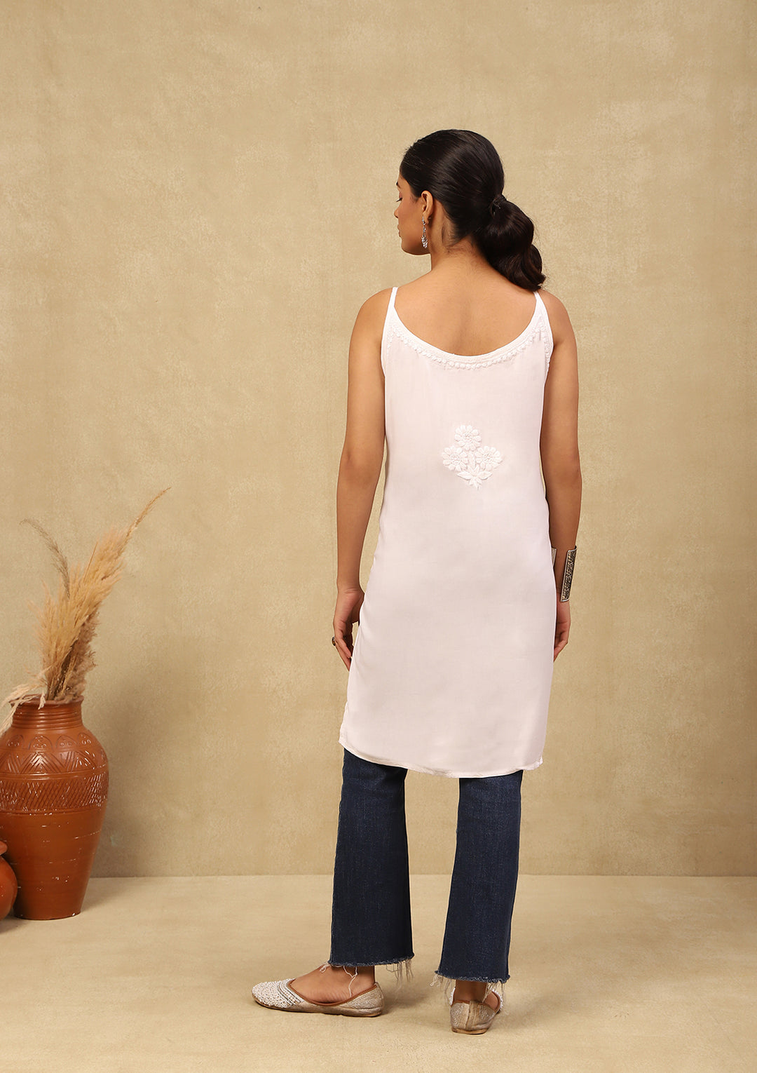 HOC Rayon Chikankari Solid Women's Short Kurta – White