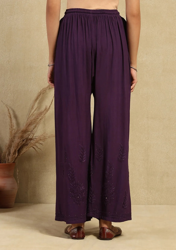 HOC Rayon Chikankari Mukaish Solid Women's 2PC Long Kurta Set -Dark Purple