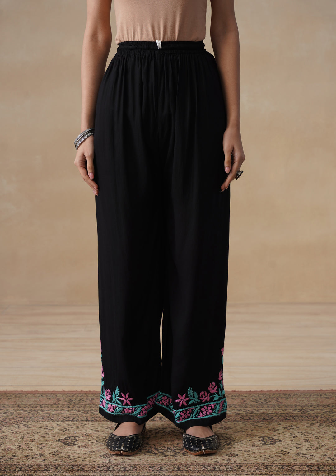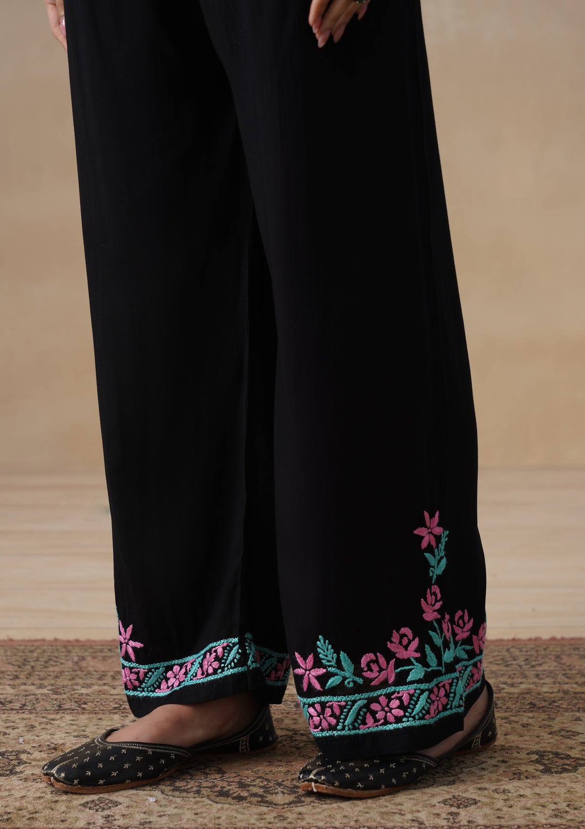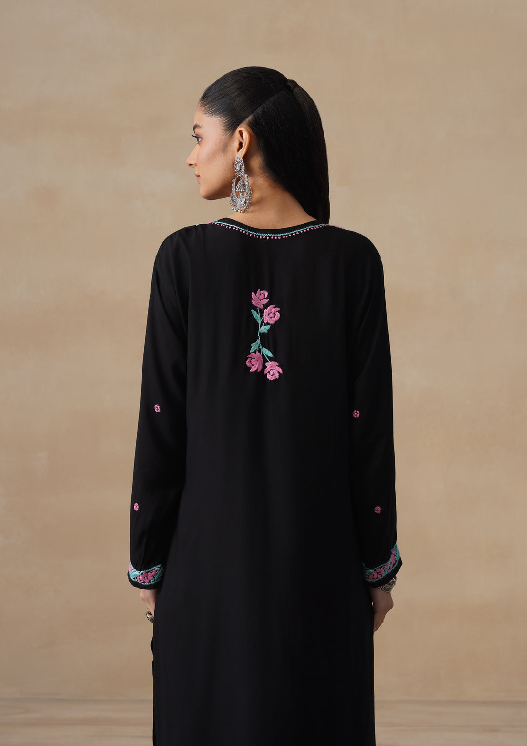 HOC Rayon Chikankari Solid Women's Long Kurta Set - Black
