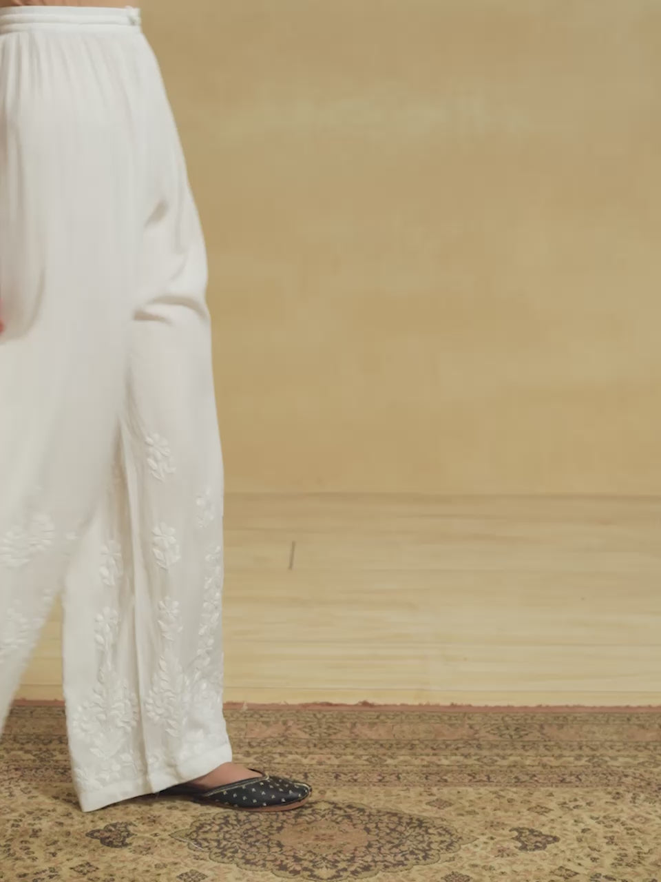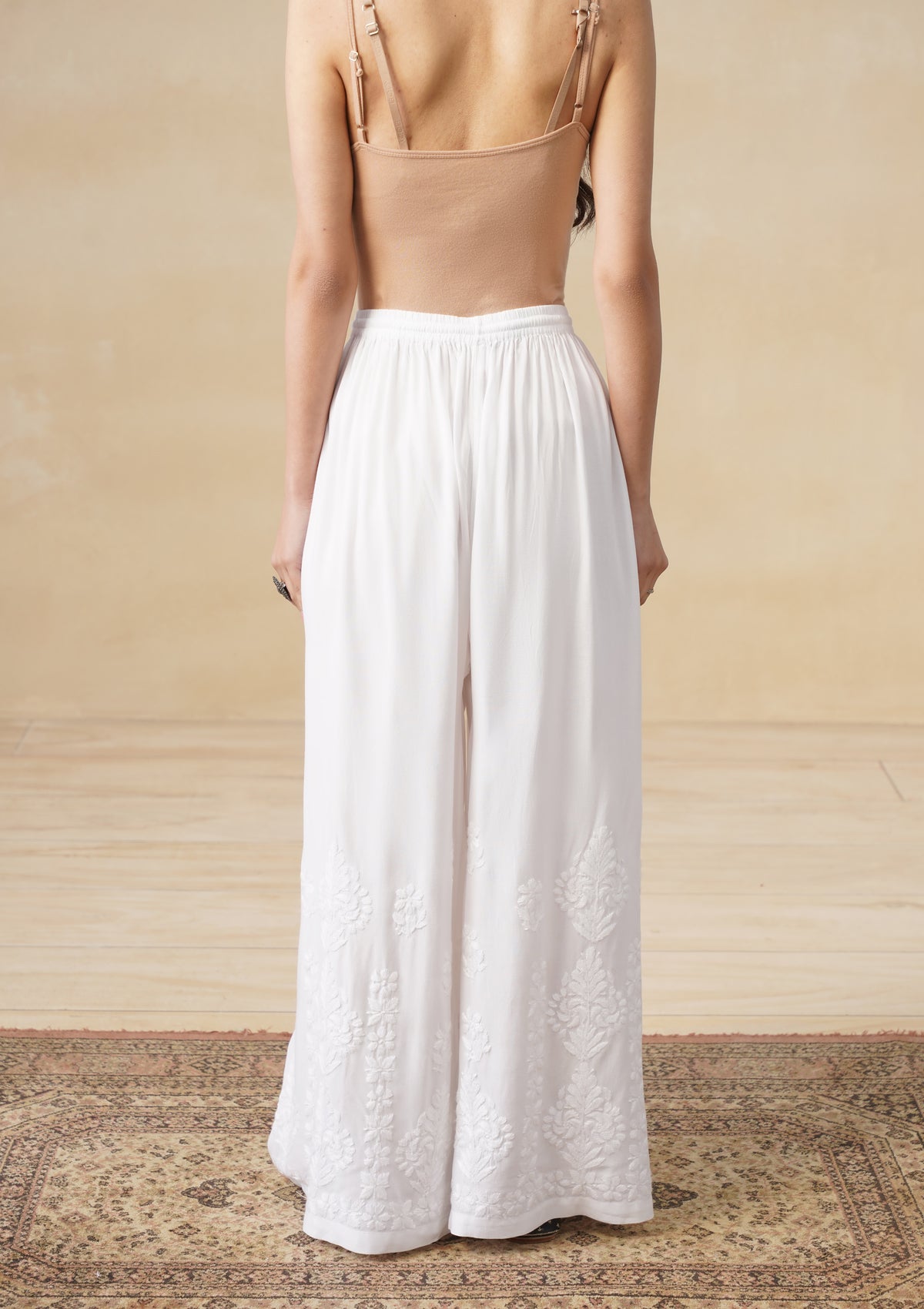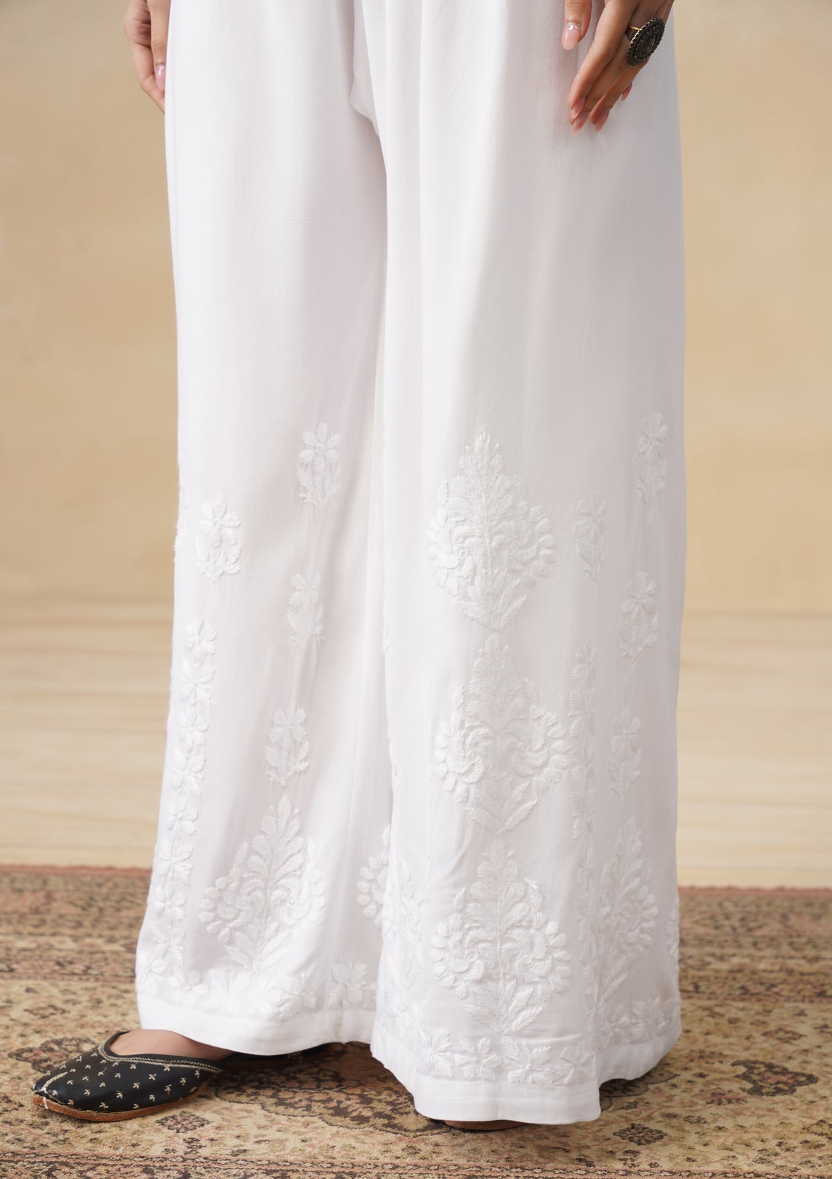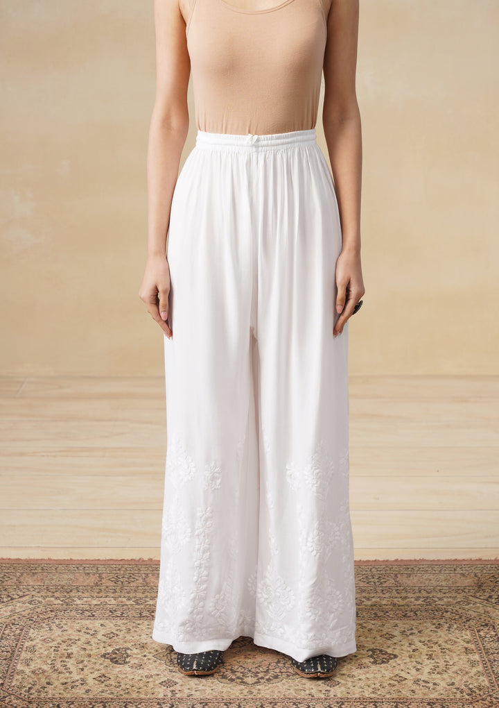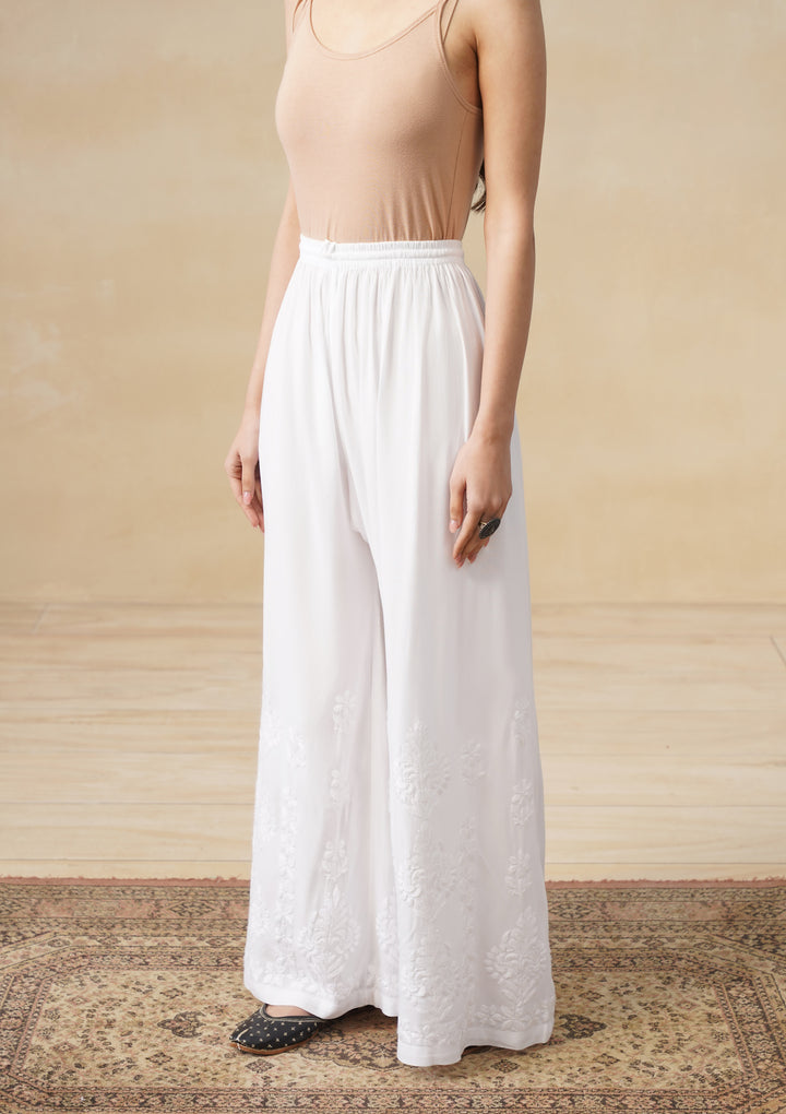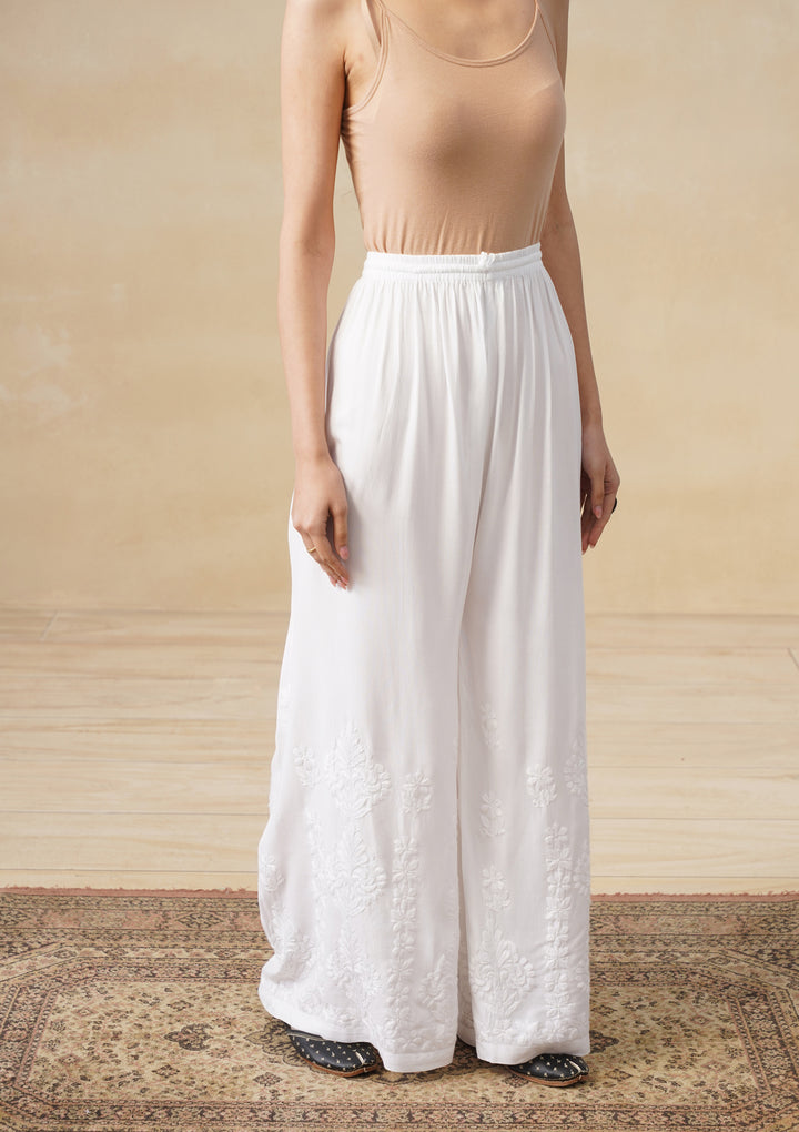 HOC Rayon Chikankari Solid Women's Flared Palazzo - White