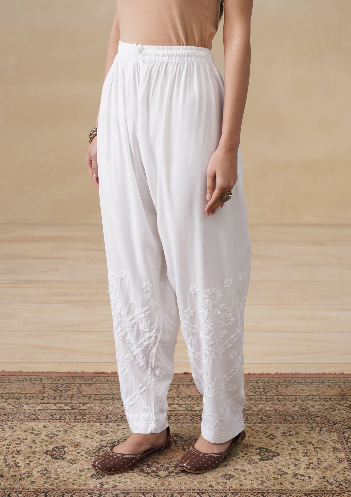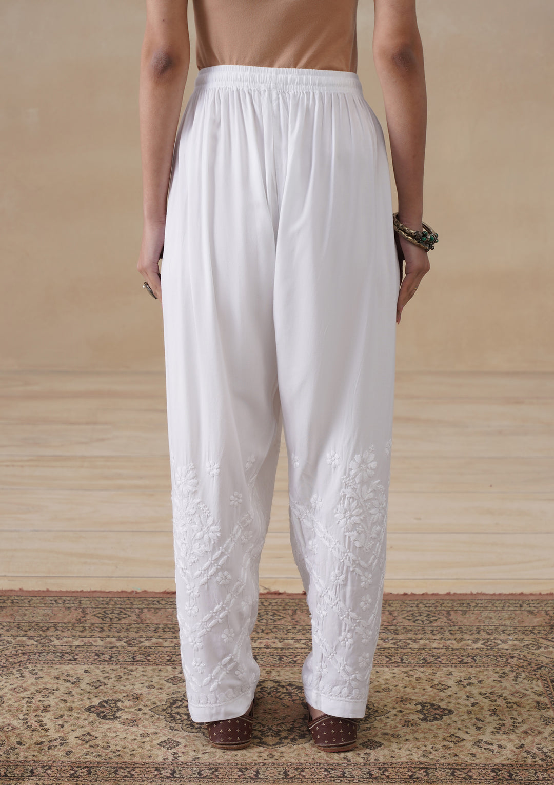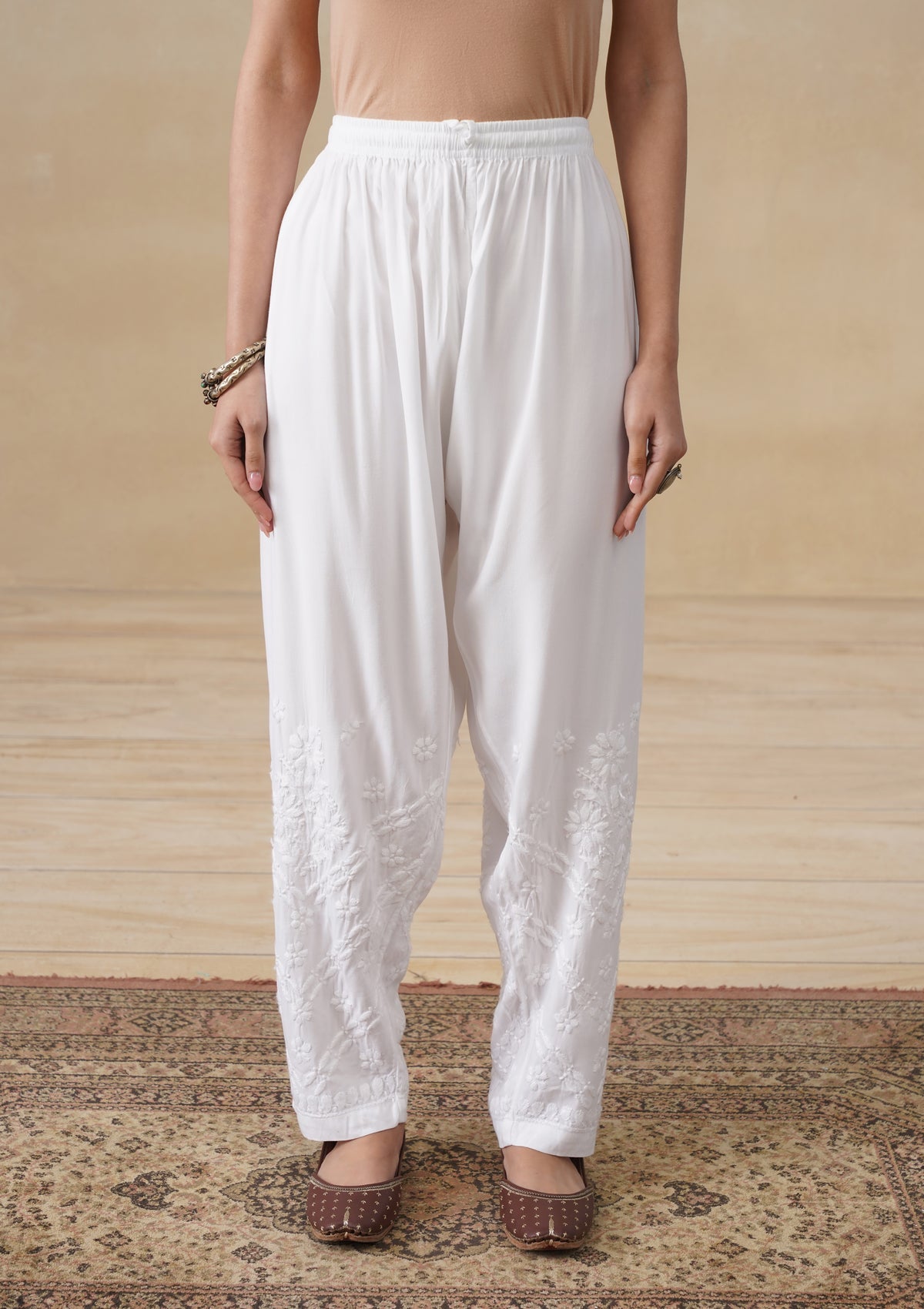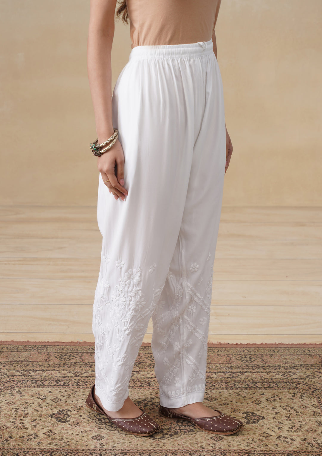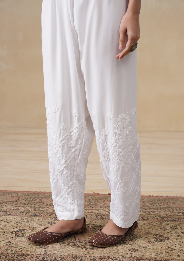 HOC Rayon Chikankari Solid Women's Pant - White