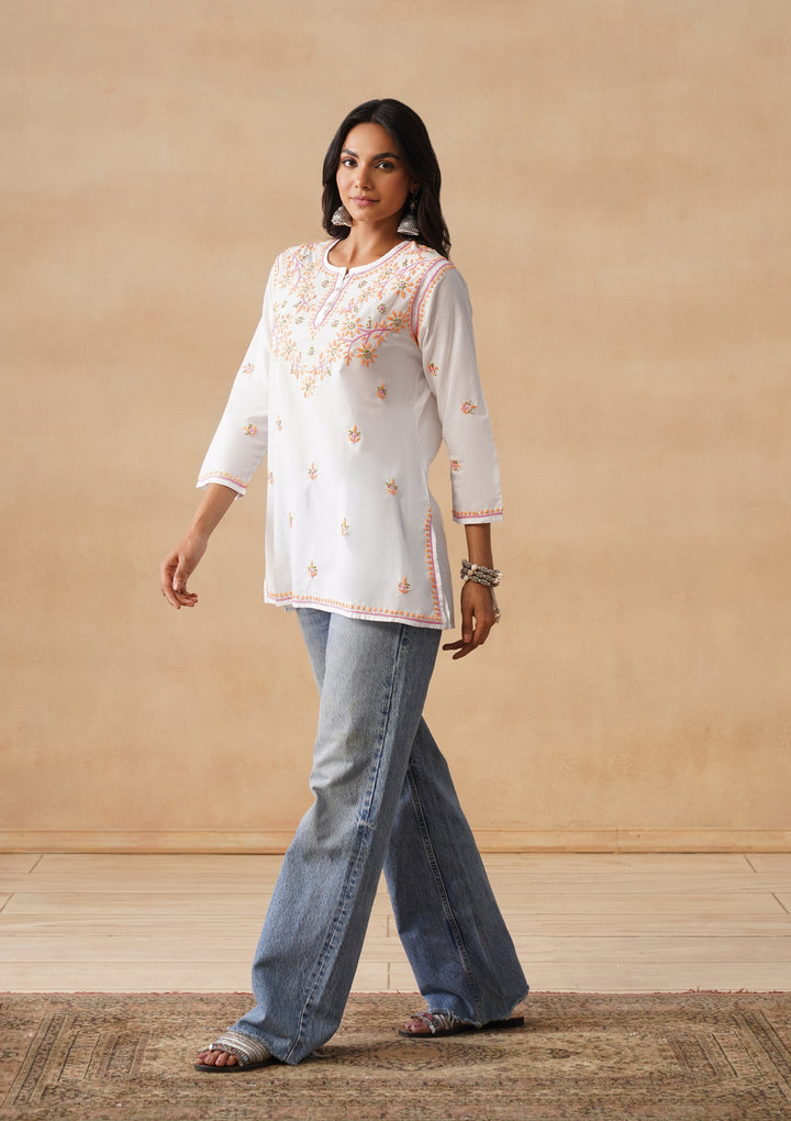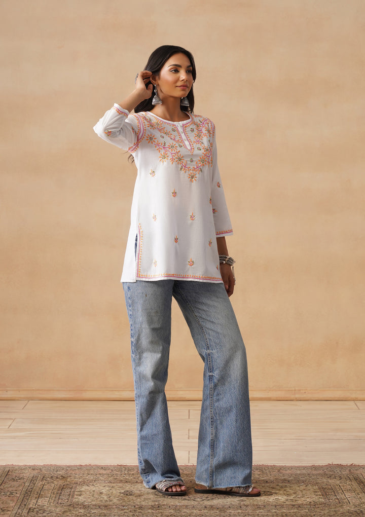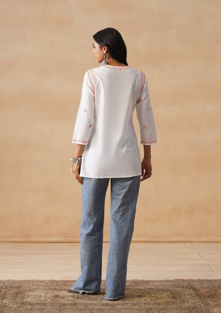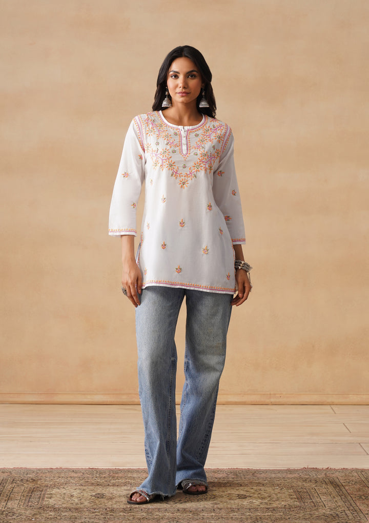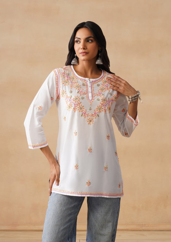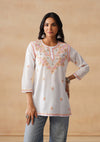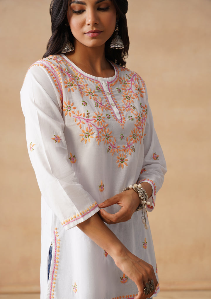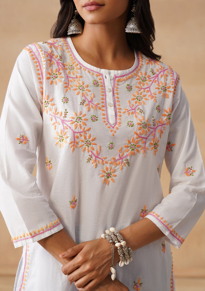 HOC Cotton Chikankari Solid Straight Women's Short Kurta-White