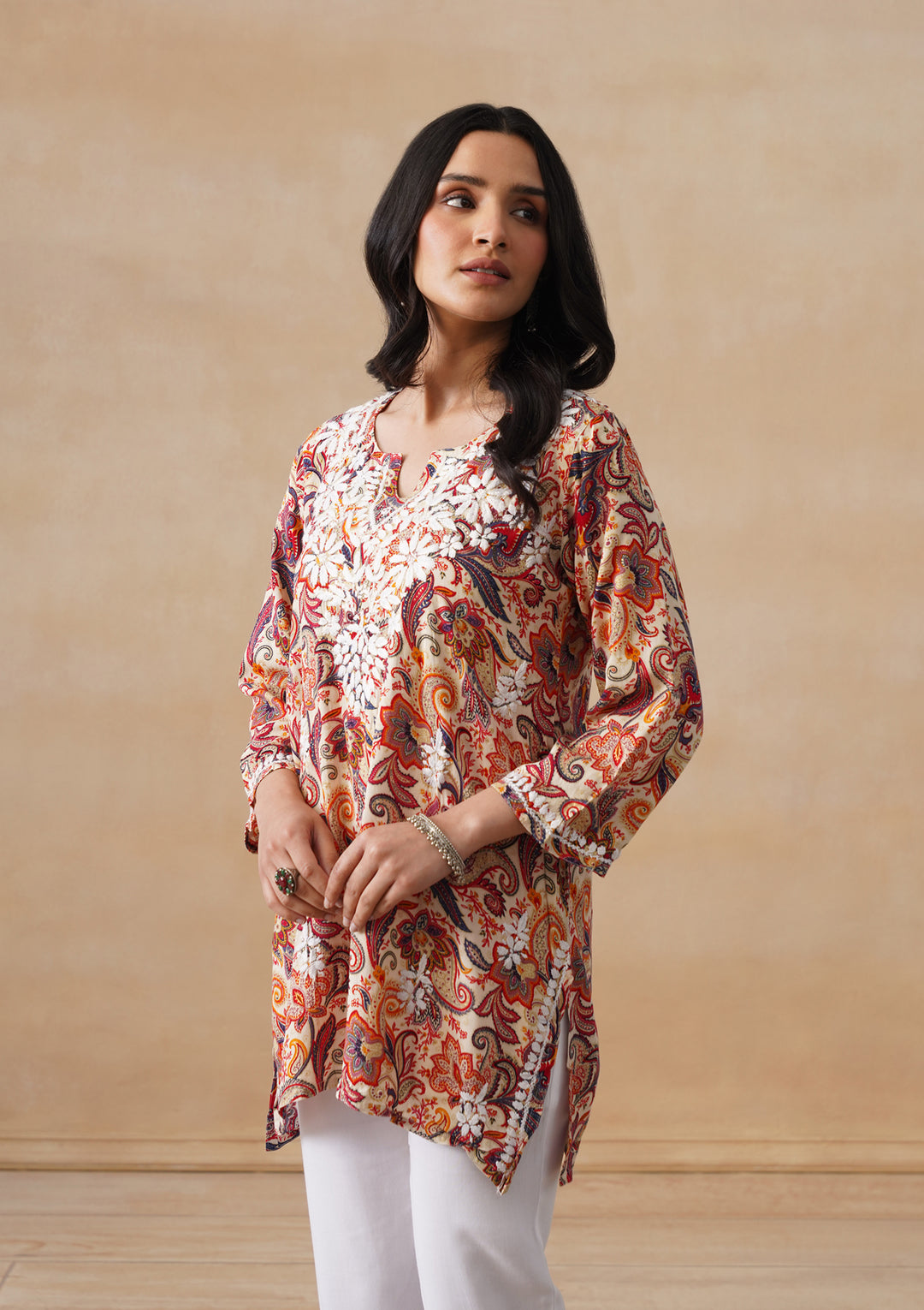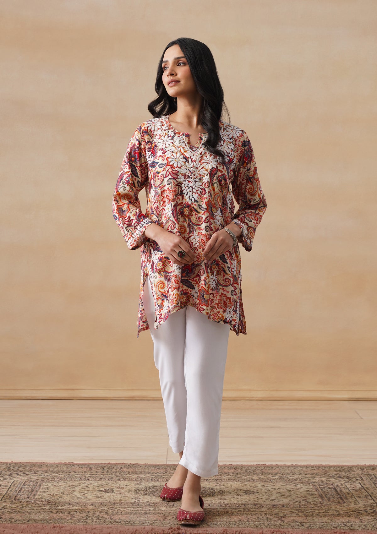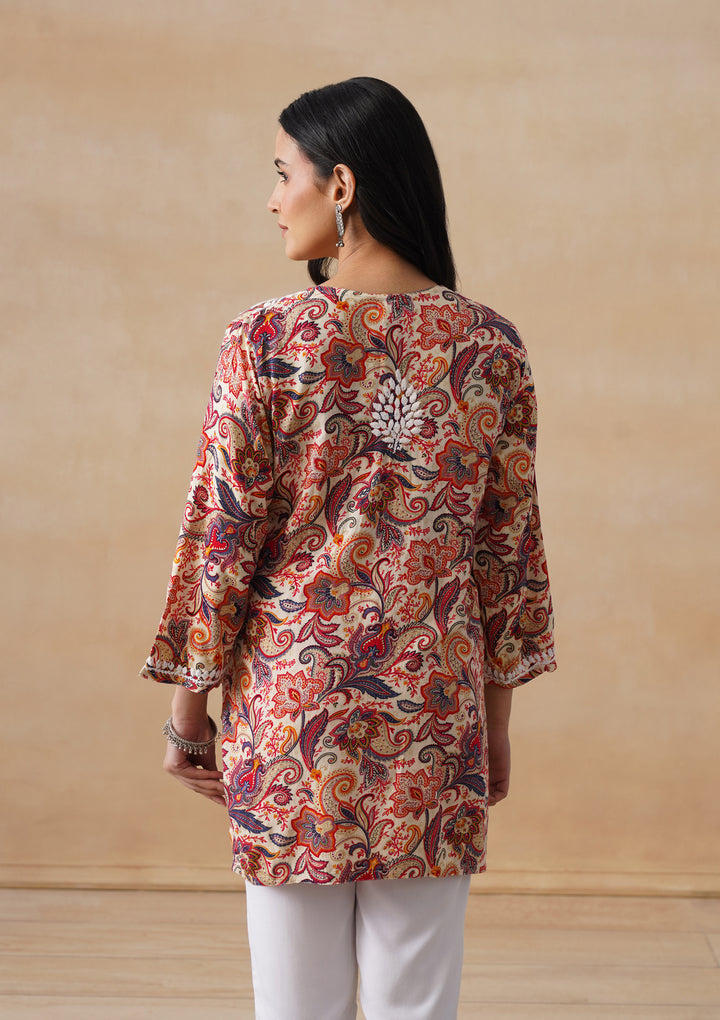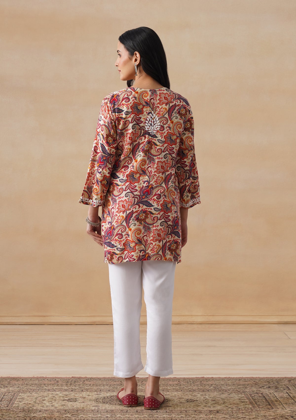 HOC Rayon Chikankari Printed Women's Short Kurta - Off white