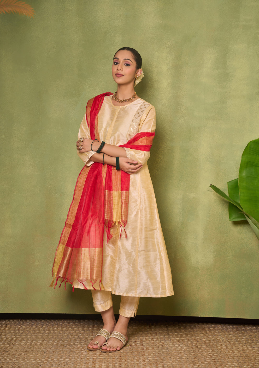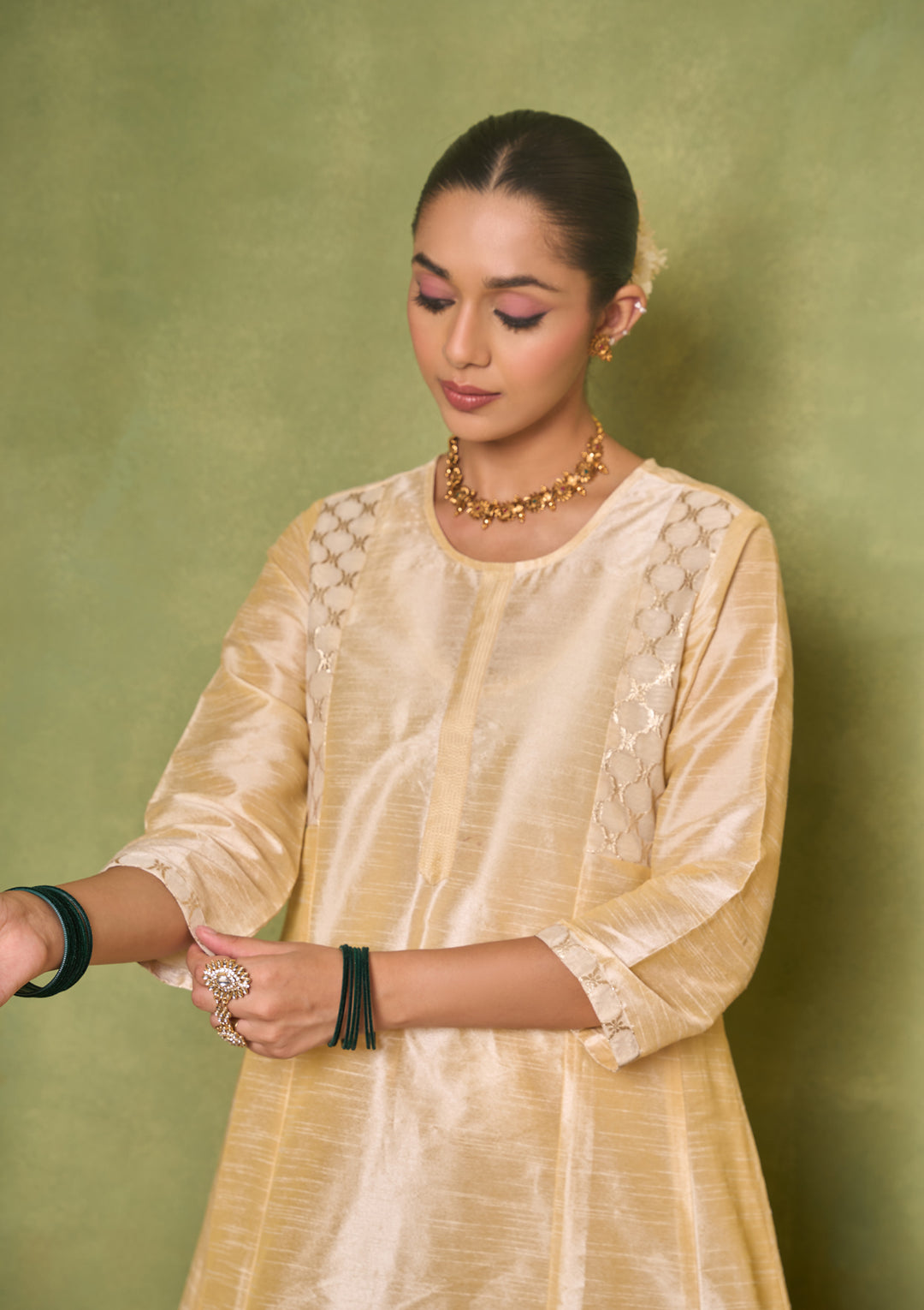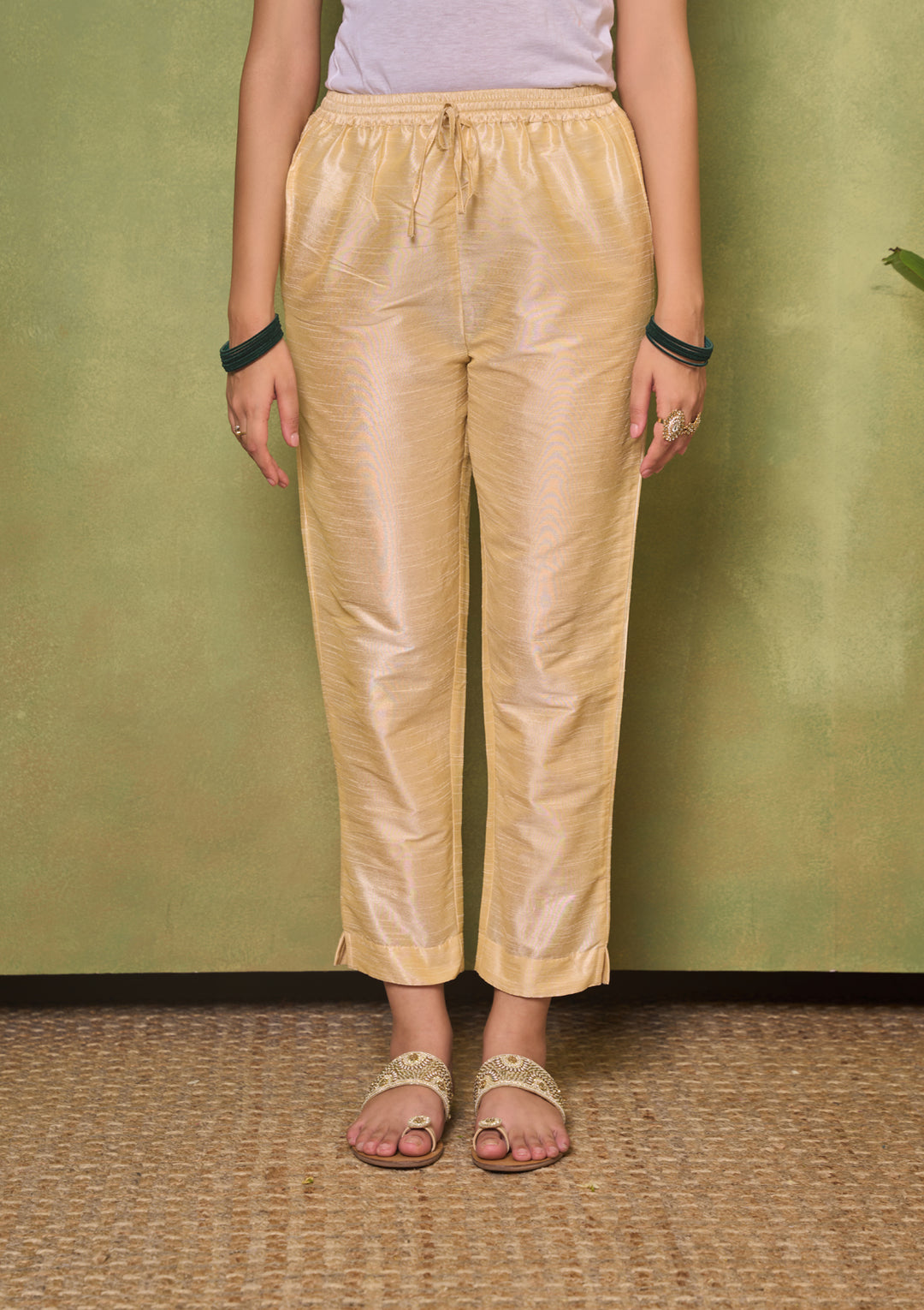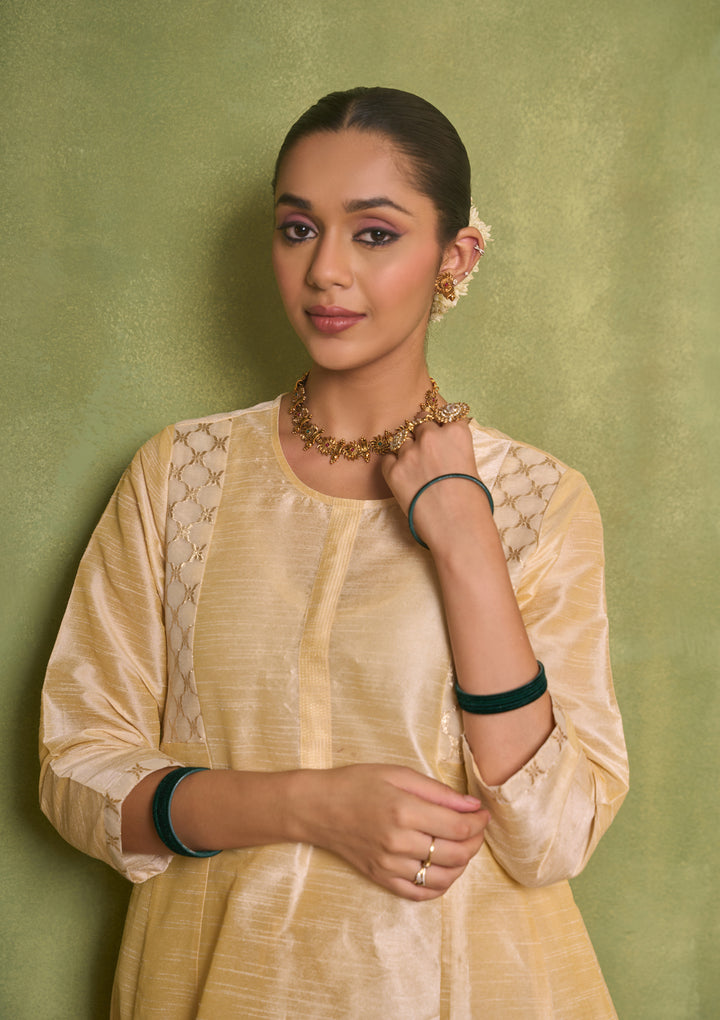 HOC Silk Blend Solid Women's 3 PC A-Line Kurta Set - Golden