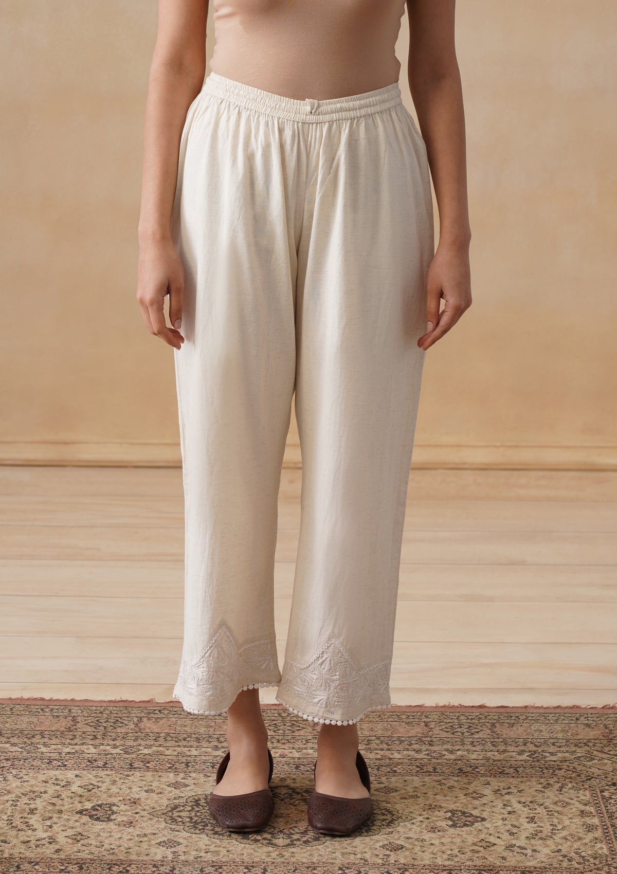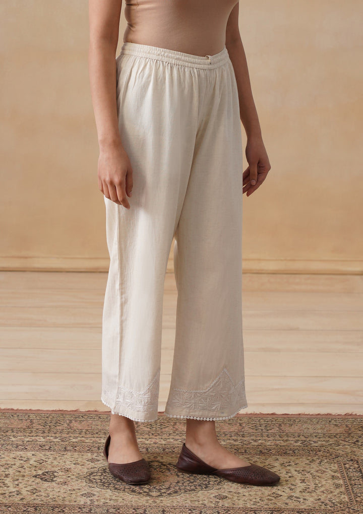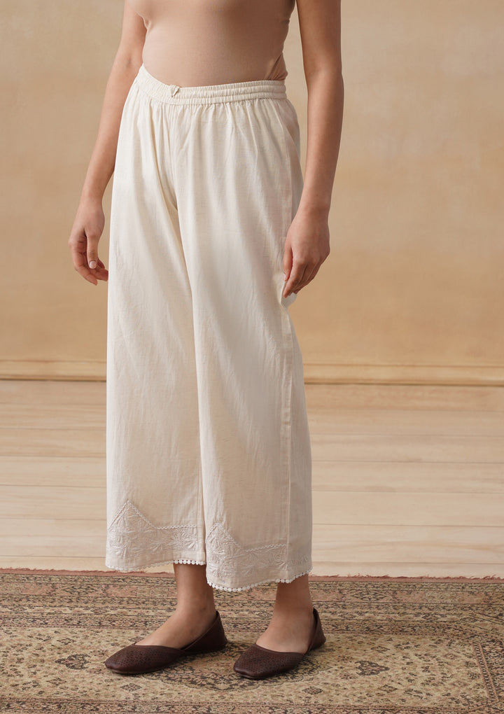 HOC Cotton Linen Blend Chikankari Solid Women's Palazzo - Off White