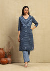 HOC Rayon Chikankari Printed Women's Long Kurta - Navy Blue