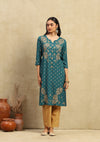 HOC Rayon Chikankari Printed Women's Long Kurta - Sea Green