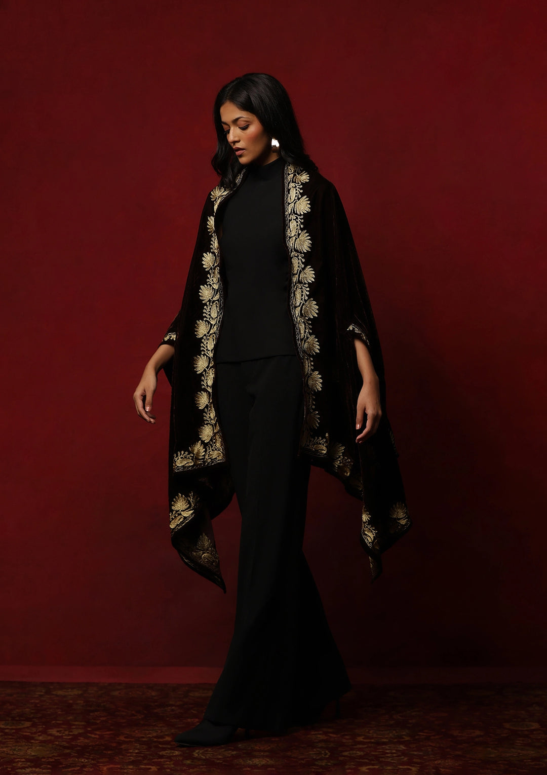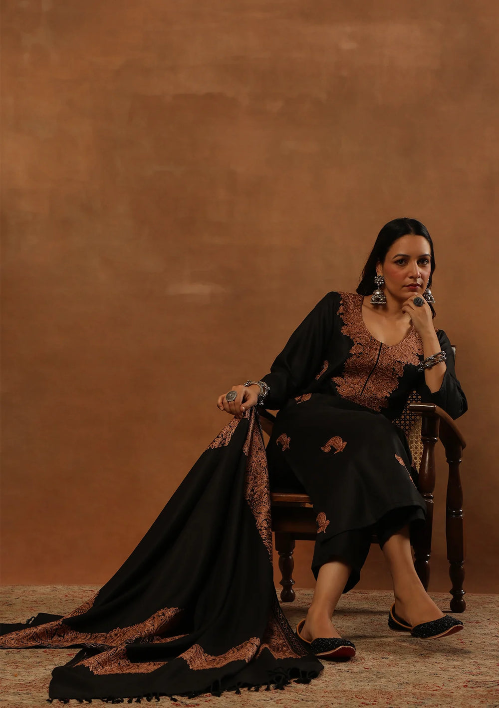 HOC Crafts Woollen Hand Embellished Solid Women's 3 PC Kurta Set - Black