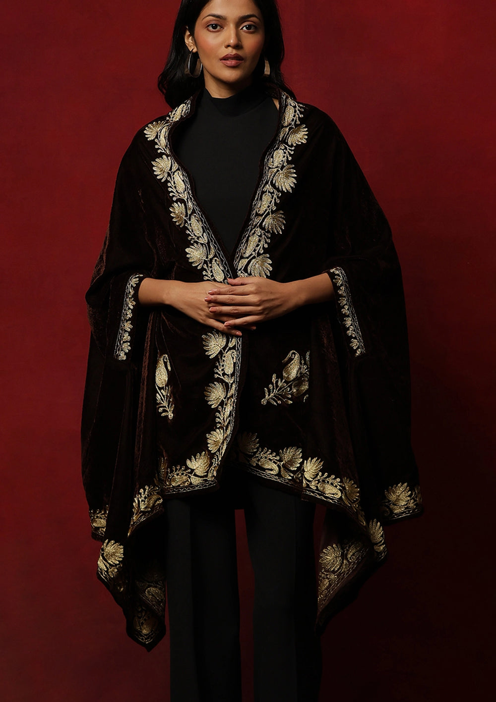 HOC Kashmiri Velvet Tilla Embroidered Solid Women's 2 PC Phiran Set -Maroon