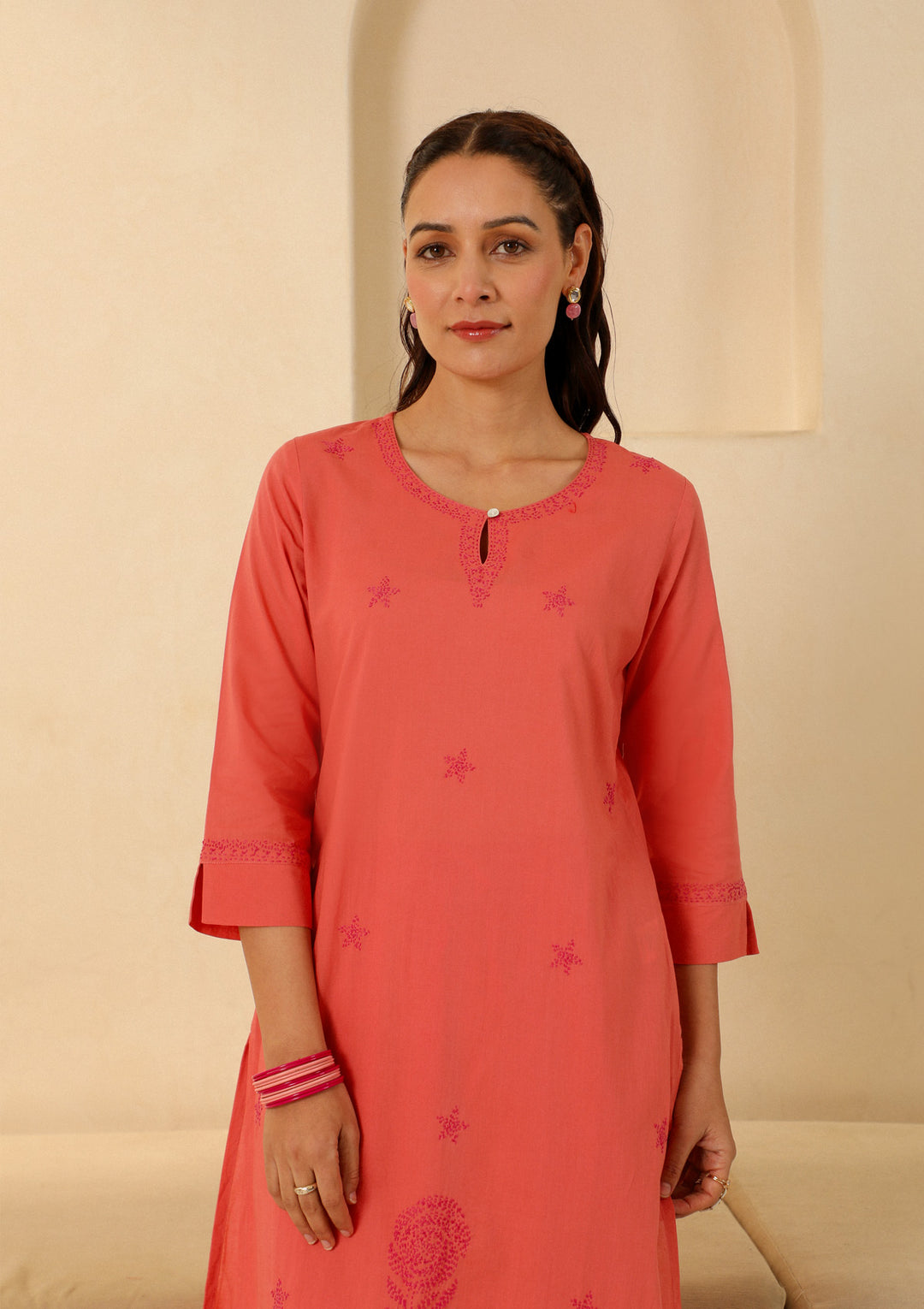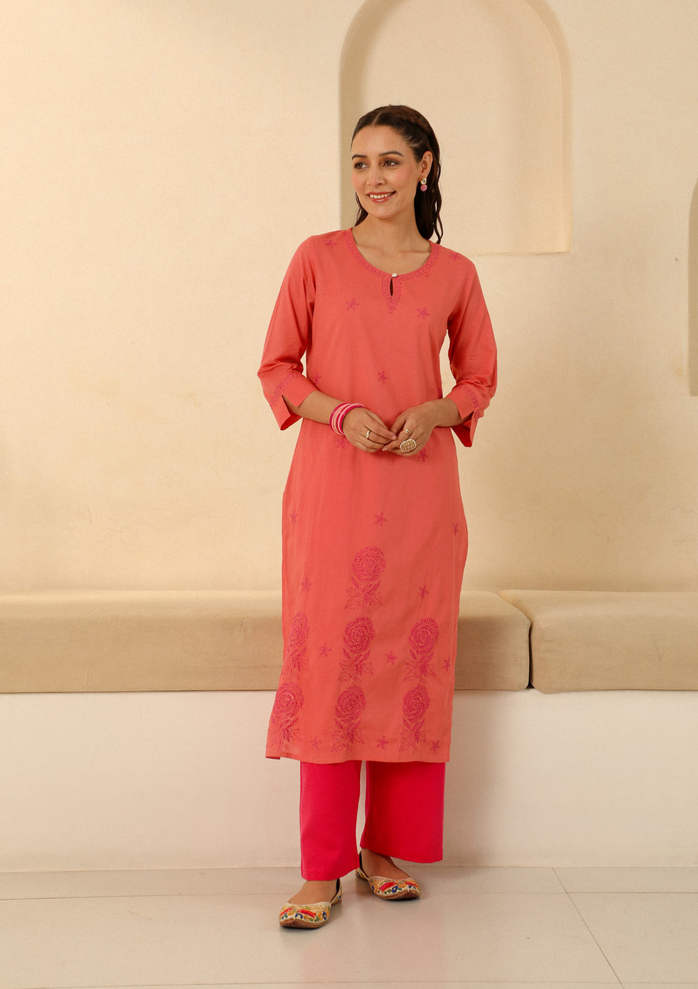 HOC Cotton Chikankari Printed Women's Shirt - Red