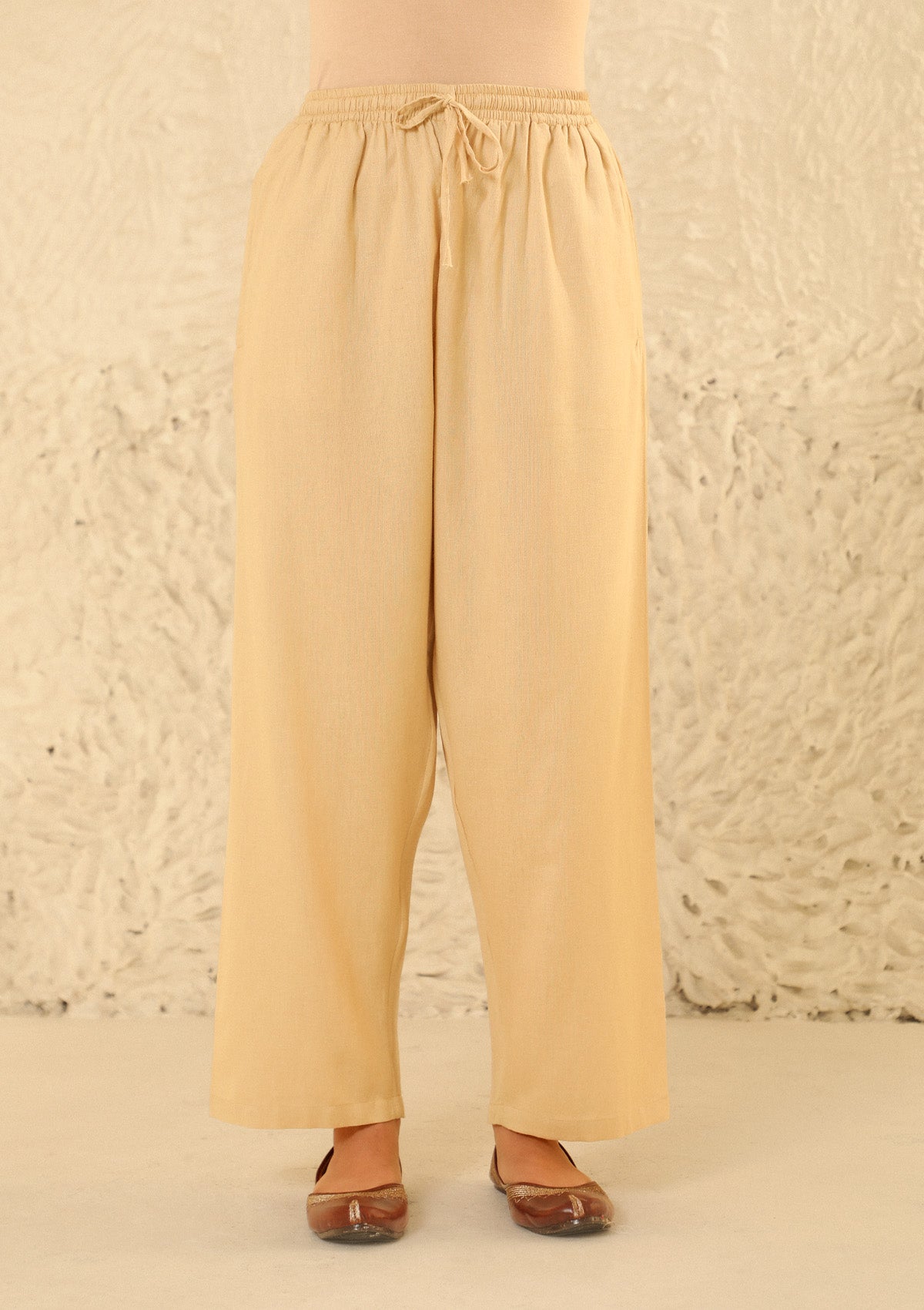 HOC Cotton Loom Women's Solid Straight Pant - Beige