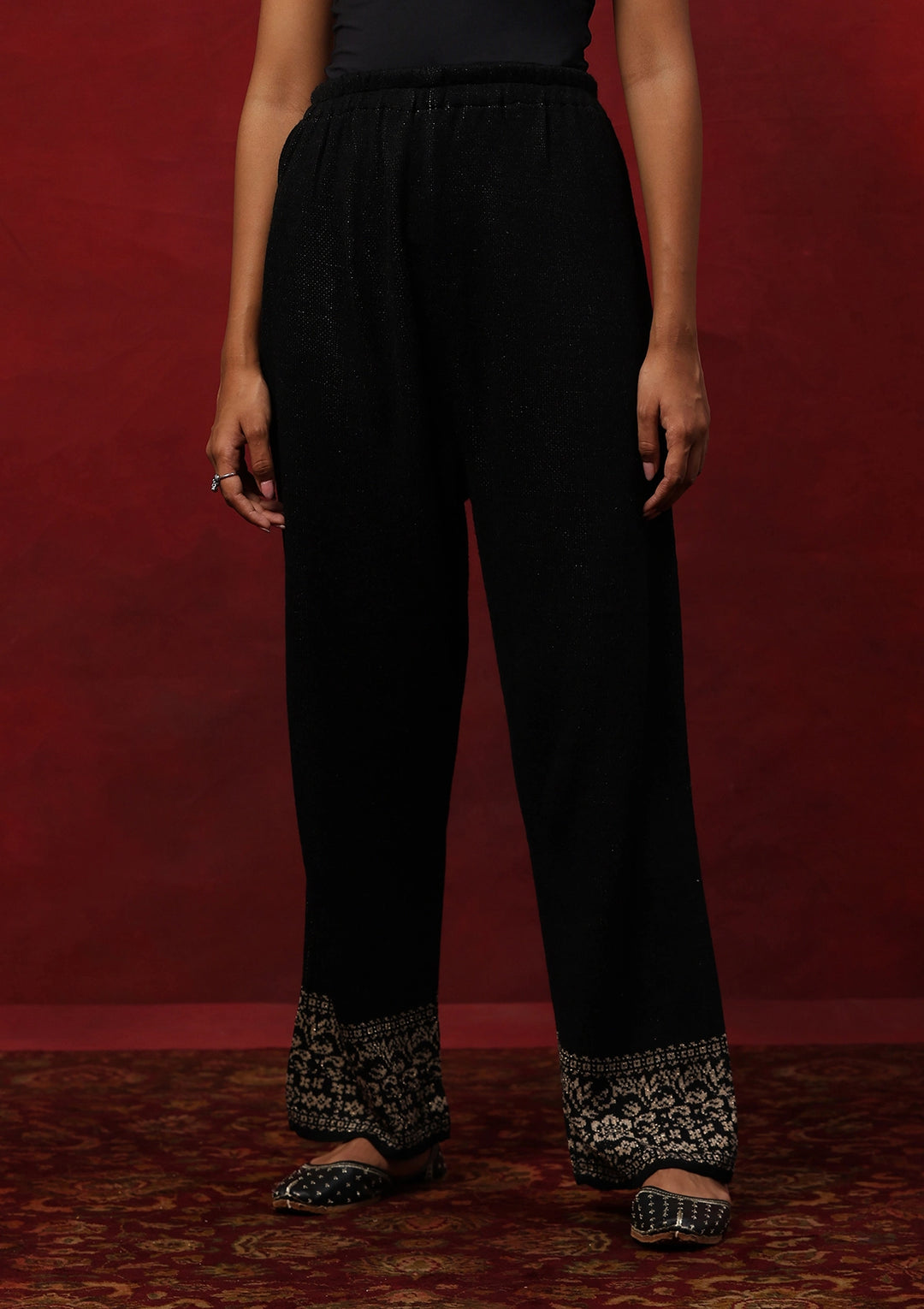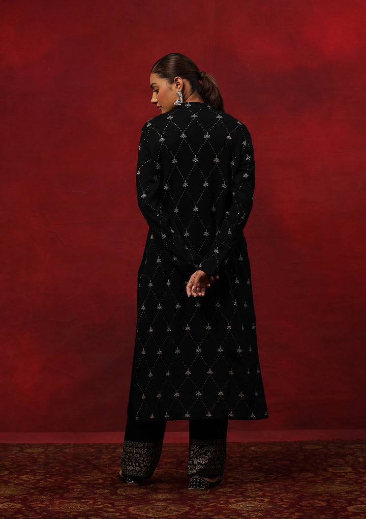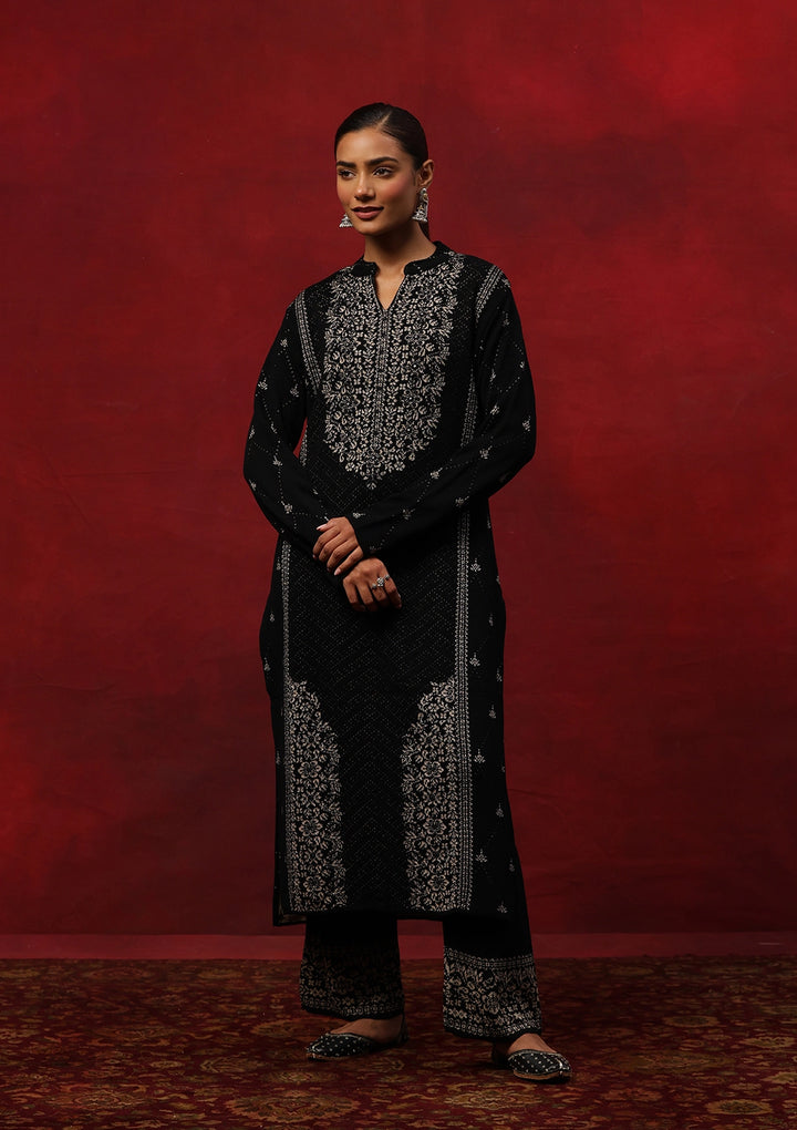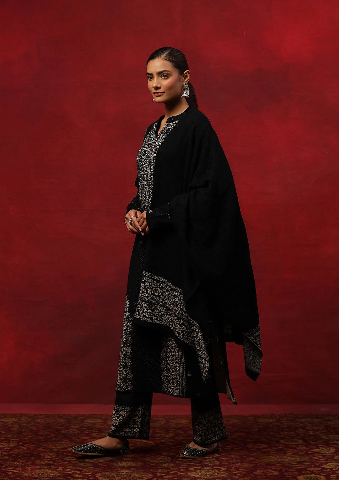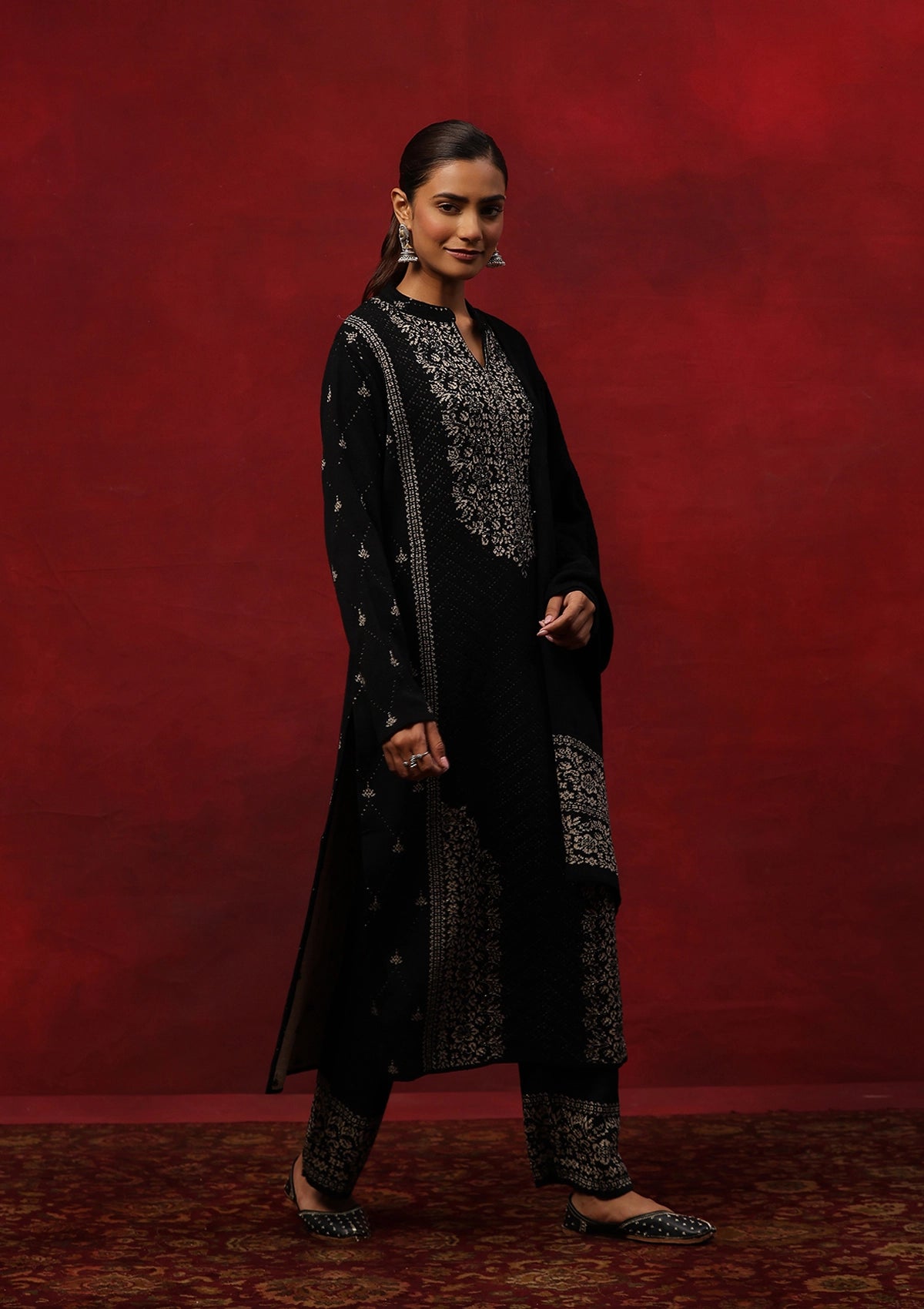 HOC Crafts Woollen Hand Embellished Solid Women's 3 PC Kurta Set - Black