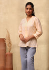 HOC Cotton Chikankari Solid Women's Top - Beige