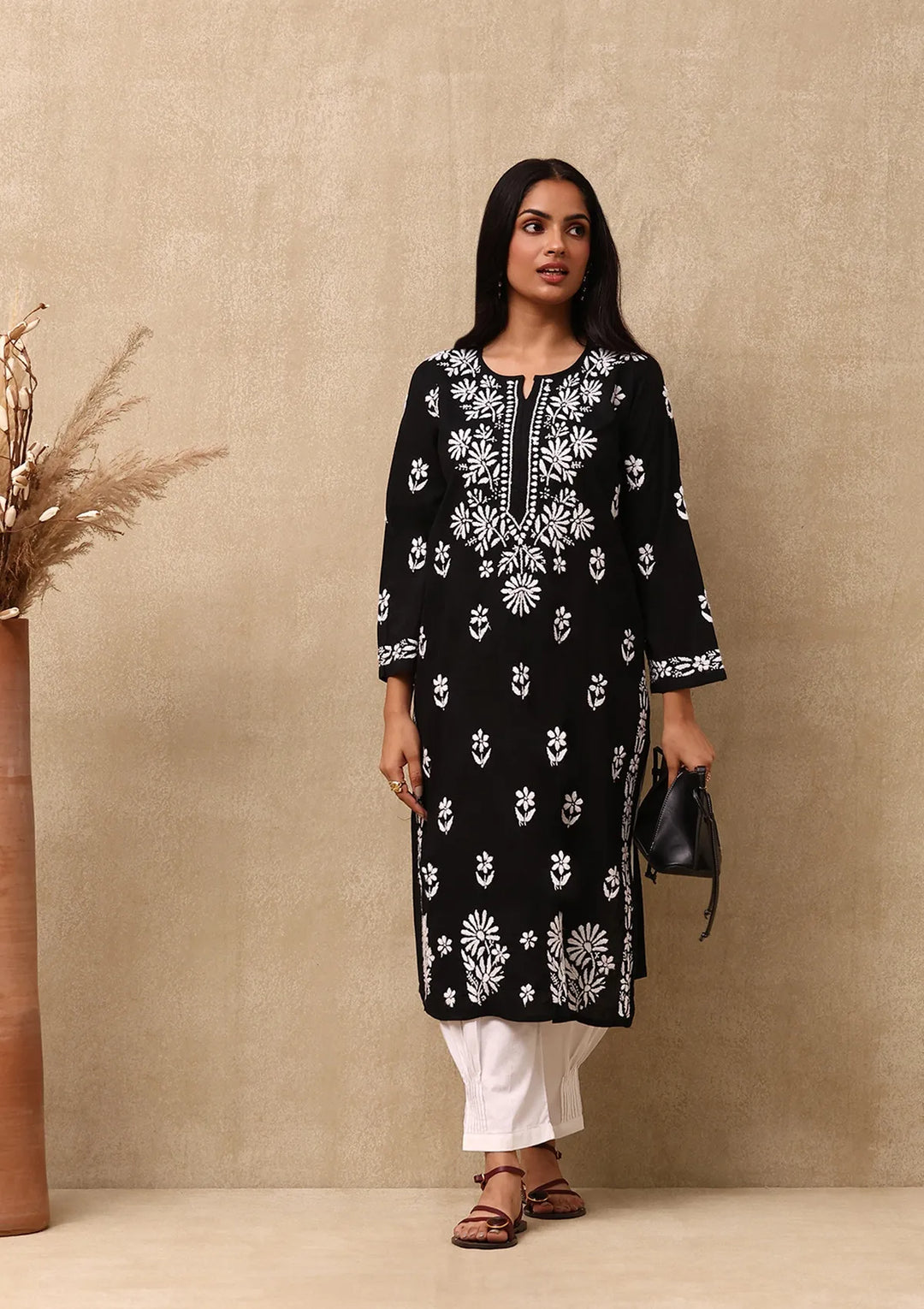HOC Eshal Chikankari Modal Straight Kurta