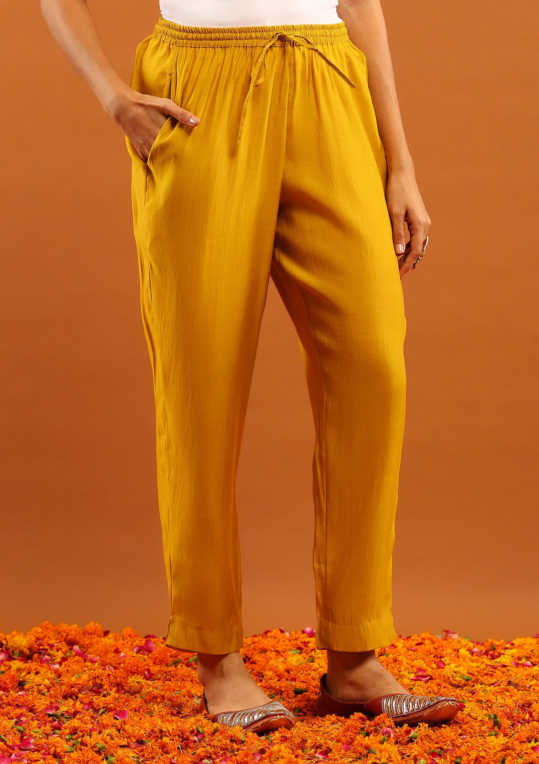 HOC Jaam Silk Chikankari Solid Women's 2 PC Long Kurta Set - Mustard
