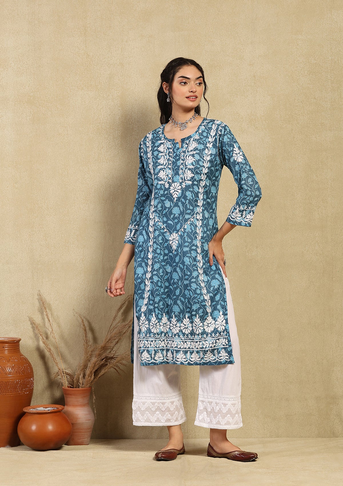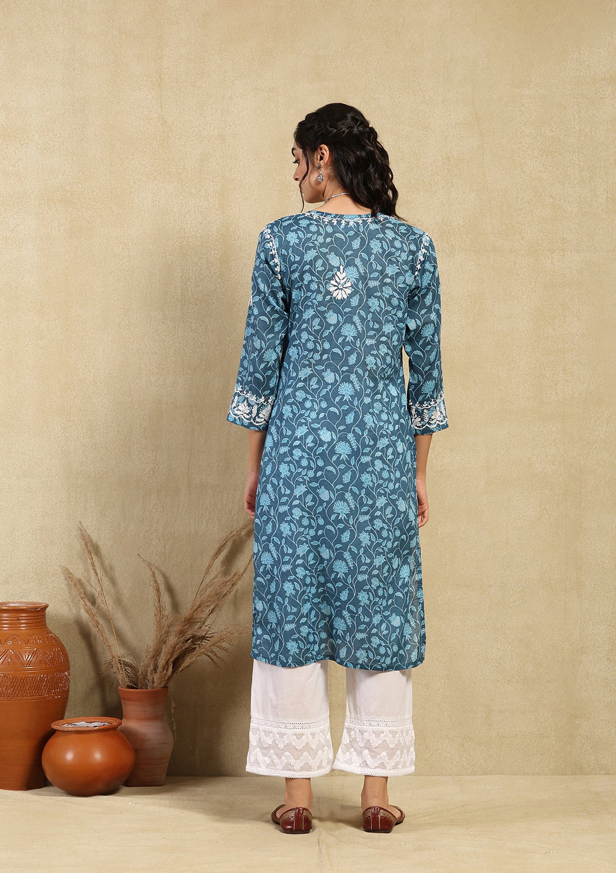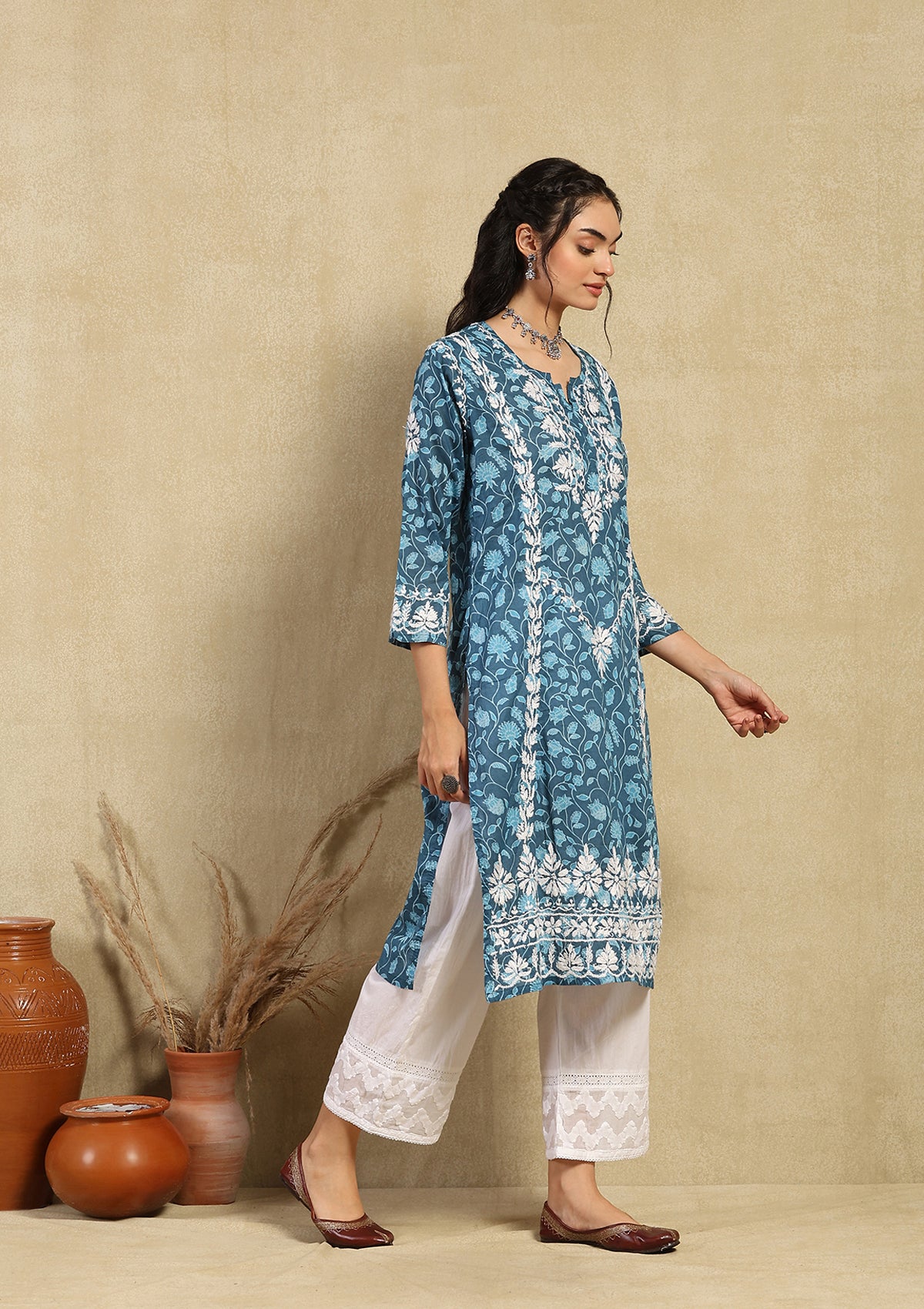 HOC Ambar Chikankari Mulmul Straight Kurta