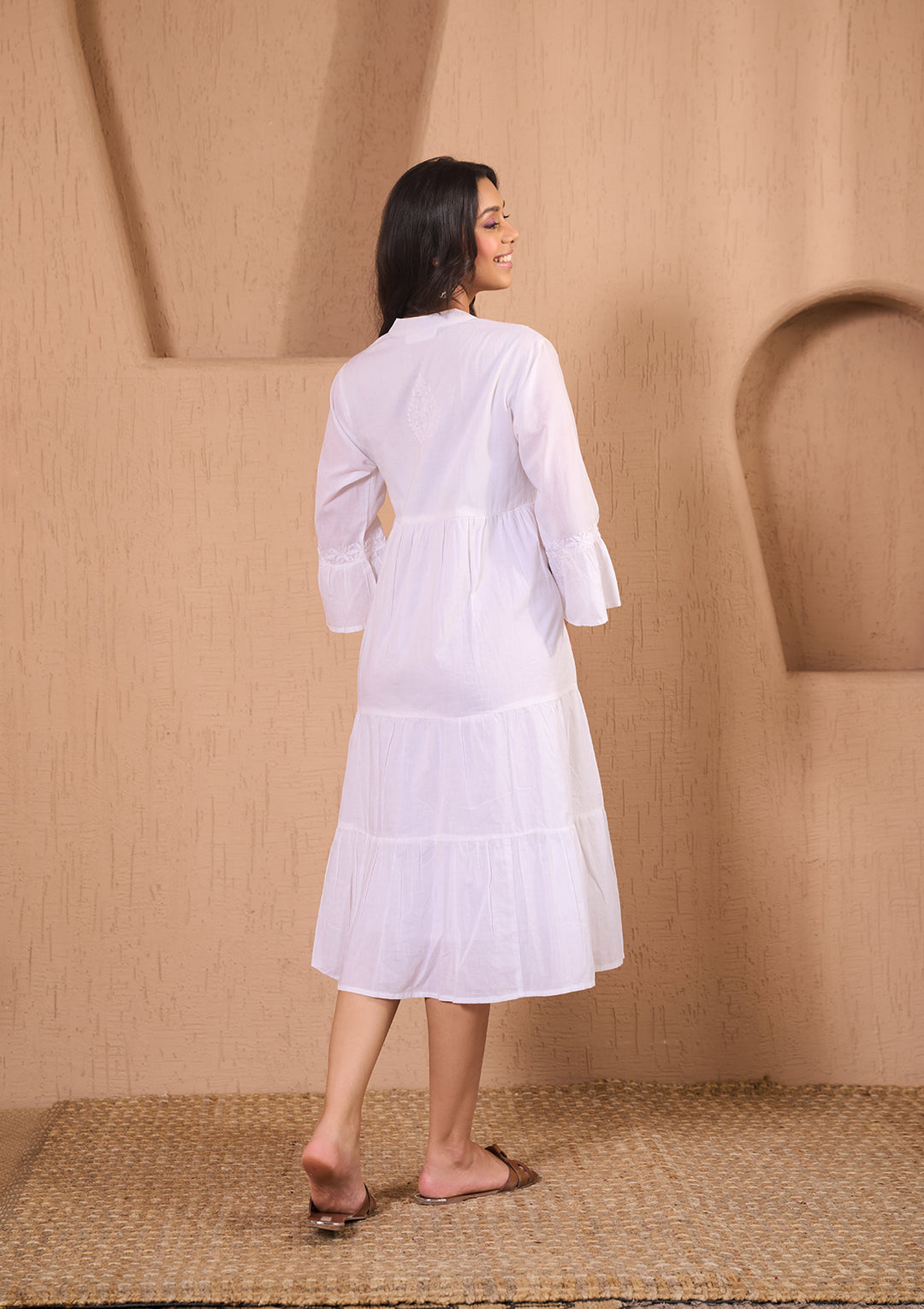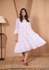 HOC Cotton Chikankari Solid Women's Long Dress-White