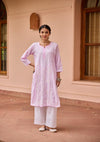 Cotton Chikankari Solid Women's Long Kurta - Pink