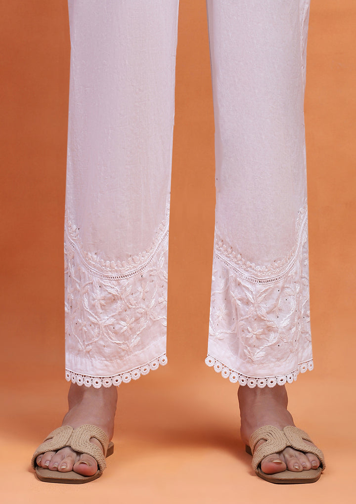 HOC Cotton Chikankari With Mukaish Solid Women's Palazzo - White