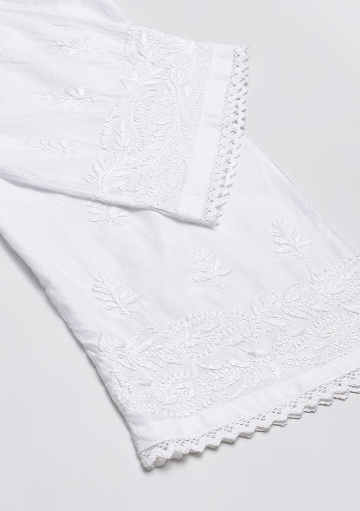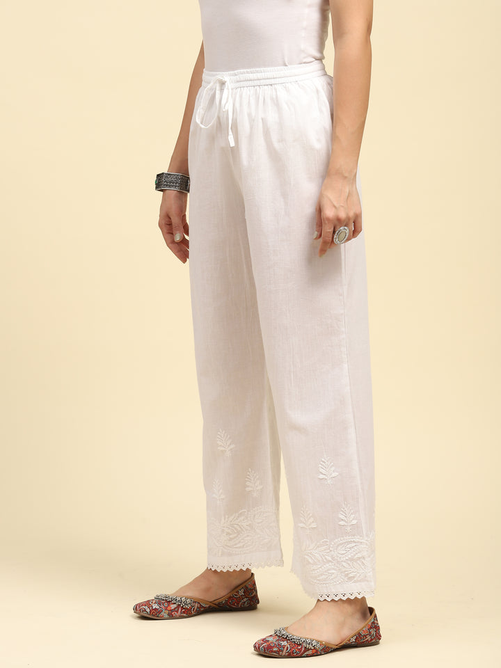 HOC Cotton Chikankari Solid Women's Palazzo - White