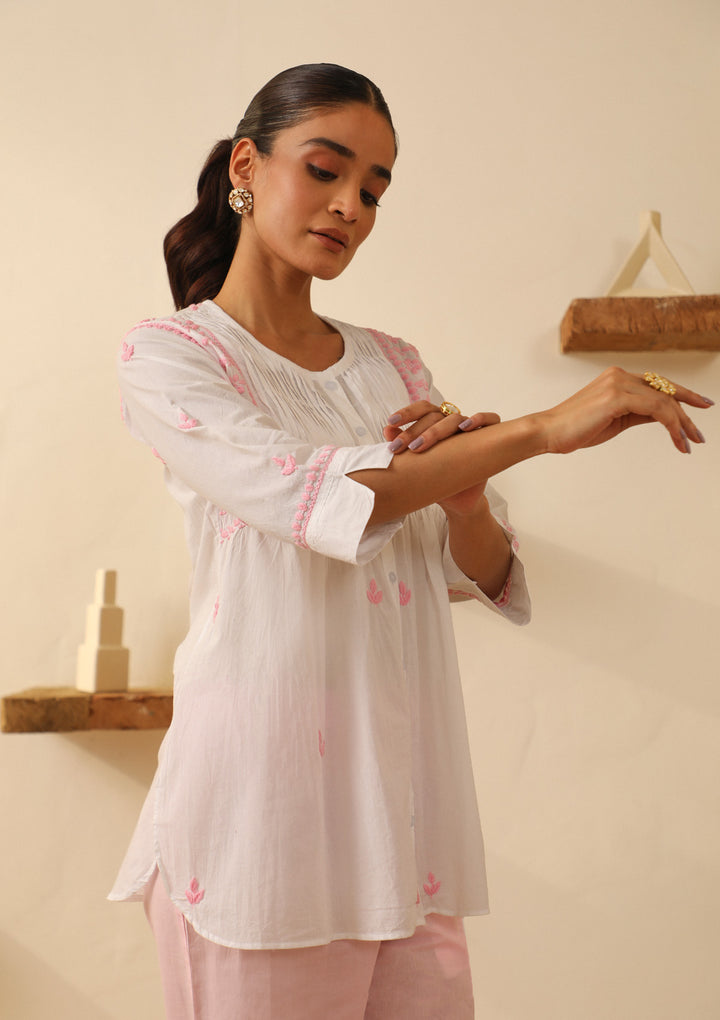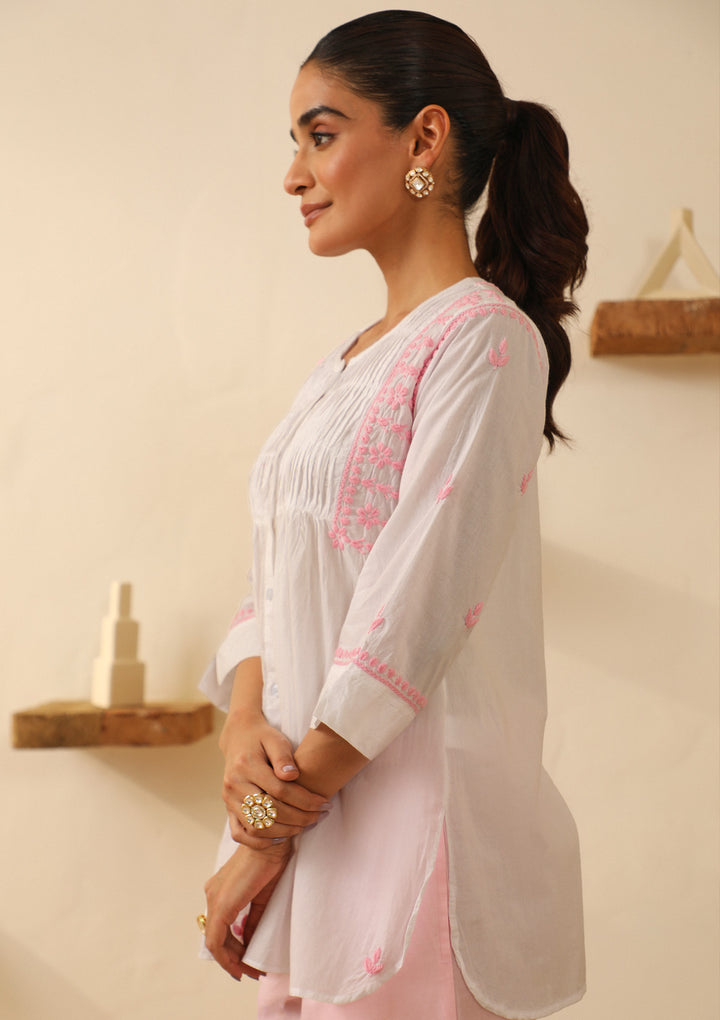Cotton Chikankari Solid Women's Short Kurta - White