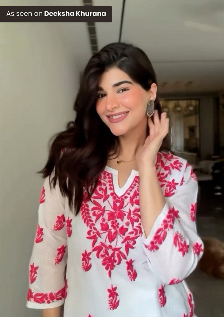 If white is your love language, when it comes to choosing outfits, then our collection of white chikankari kurtis are a must scroll through.