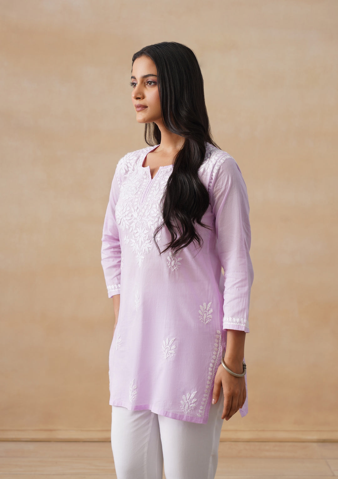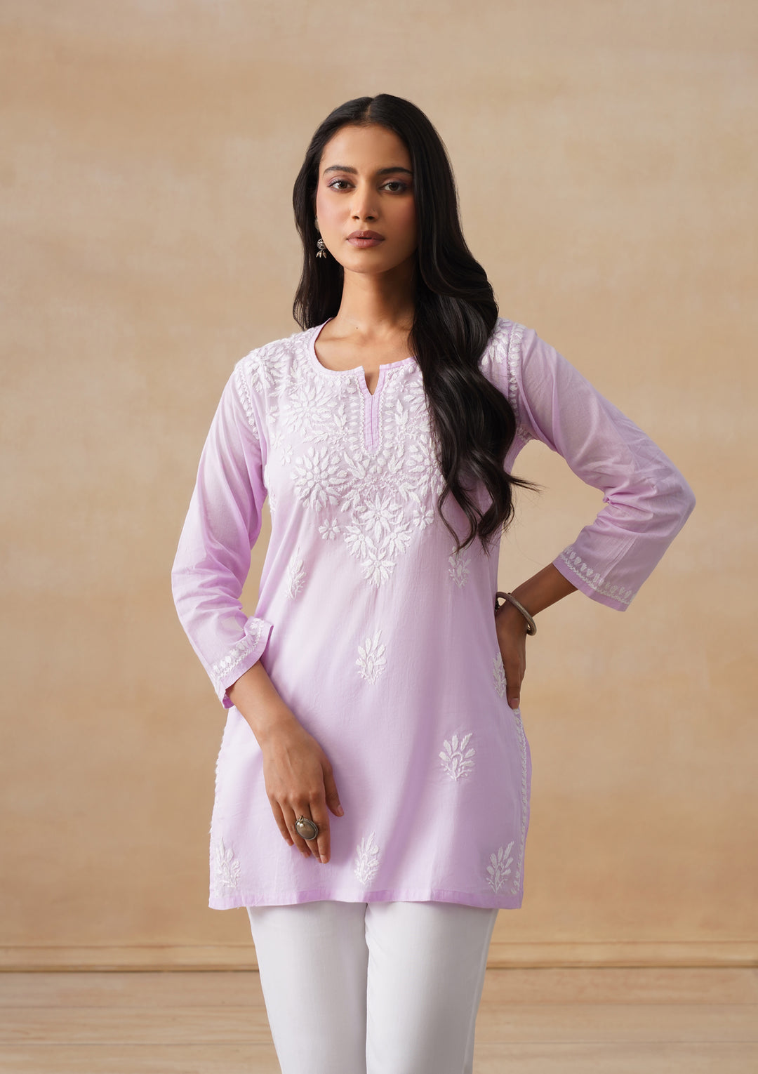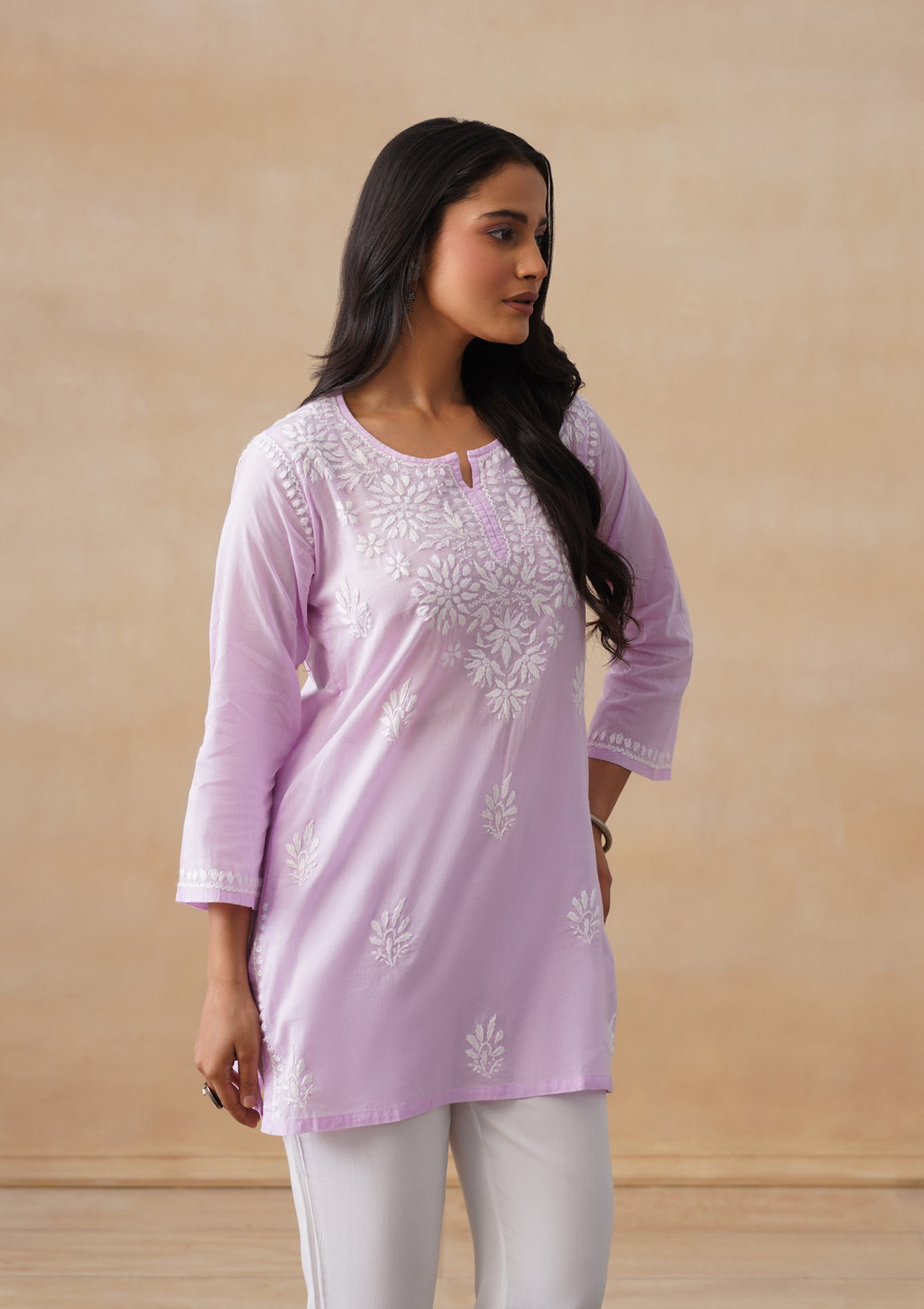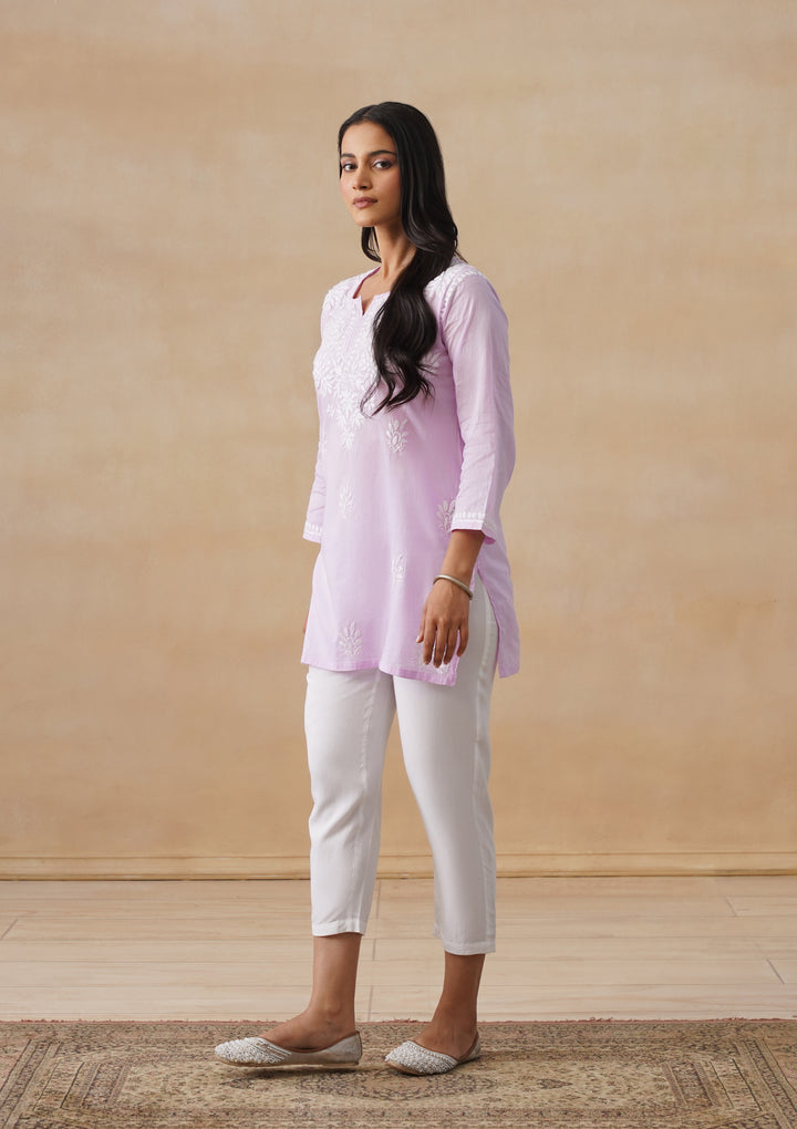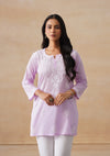HOC Cotton Chikankari Solid Women's Short Kurta - Lavender