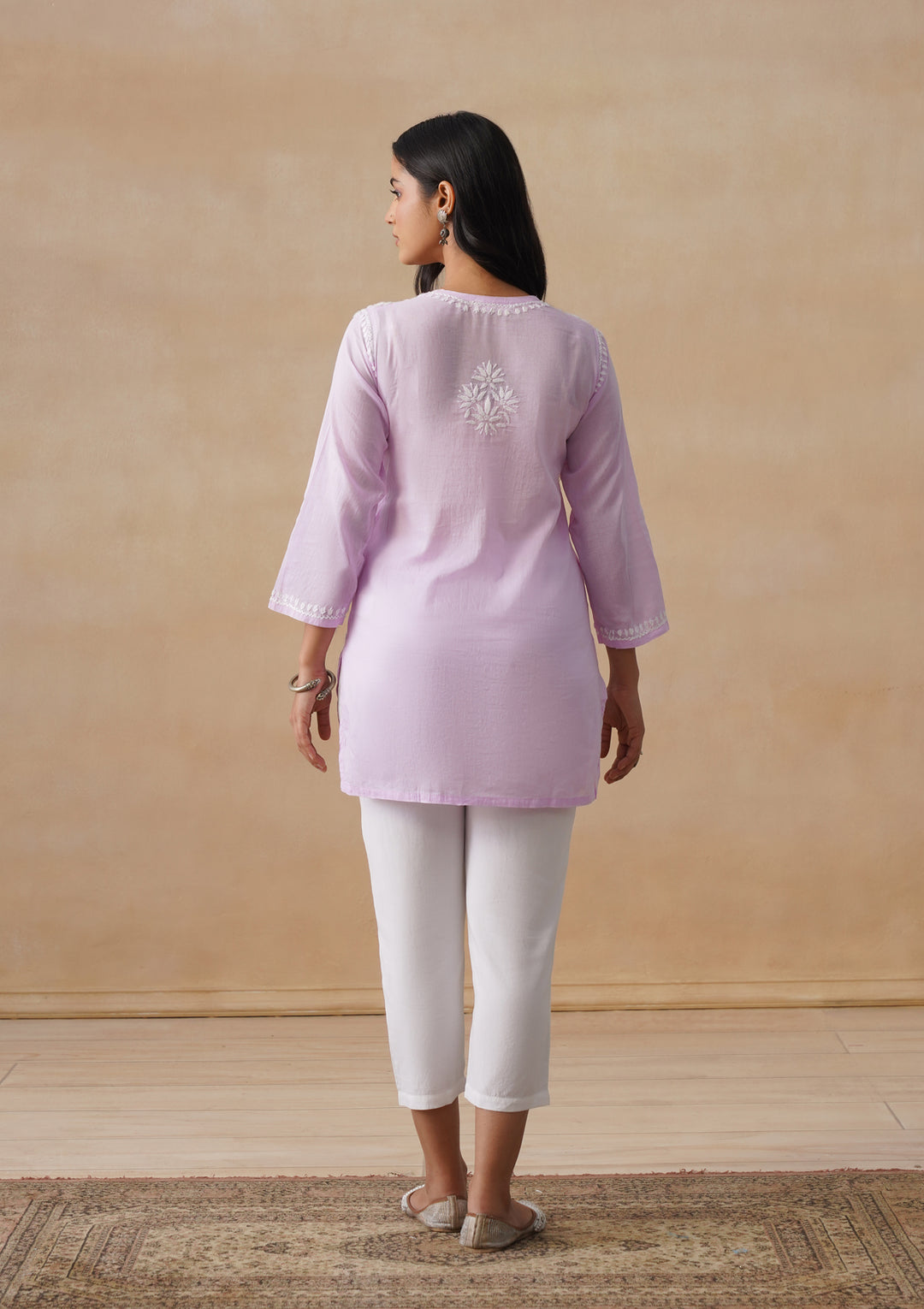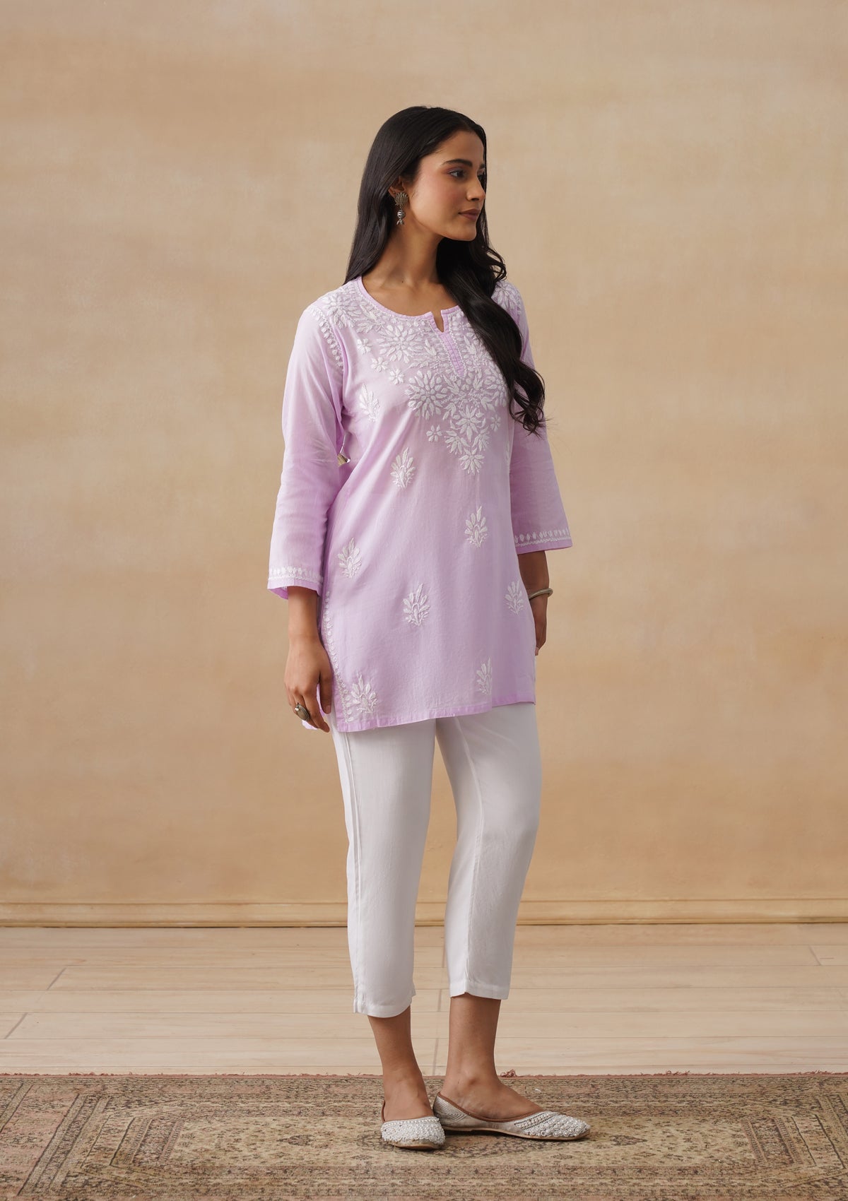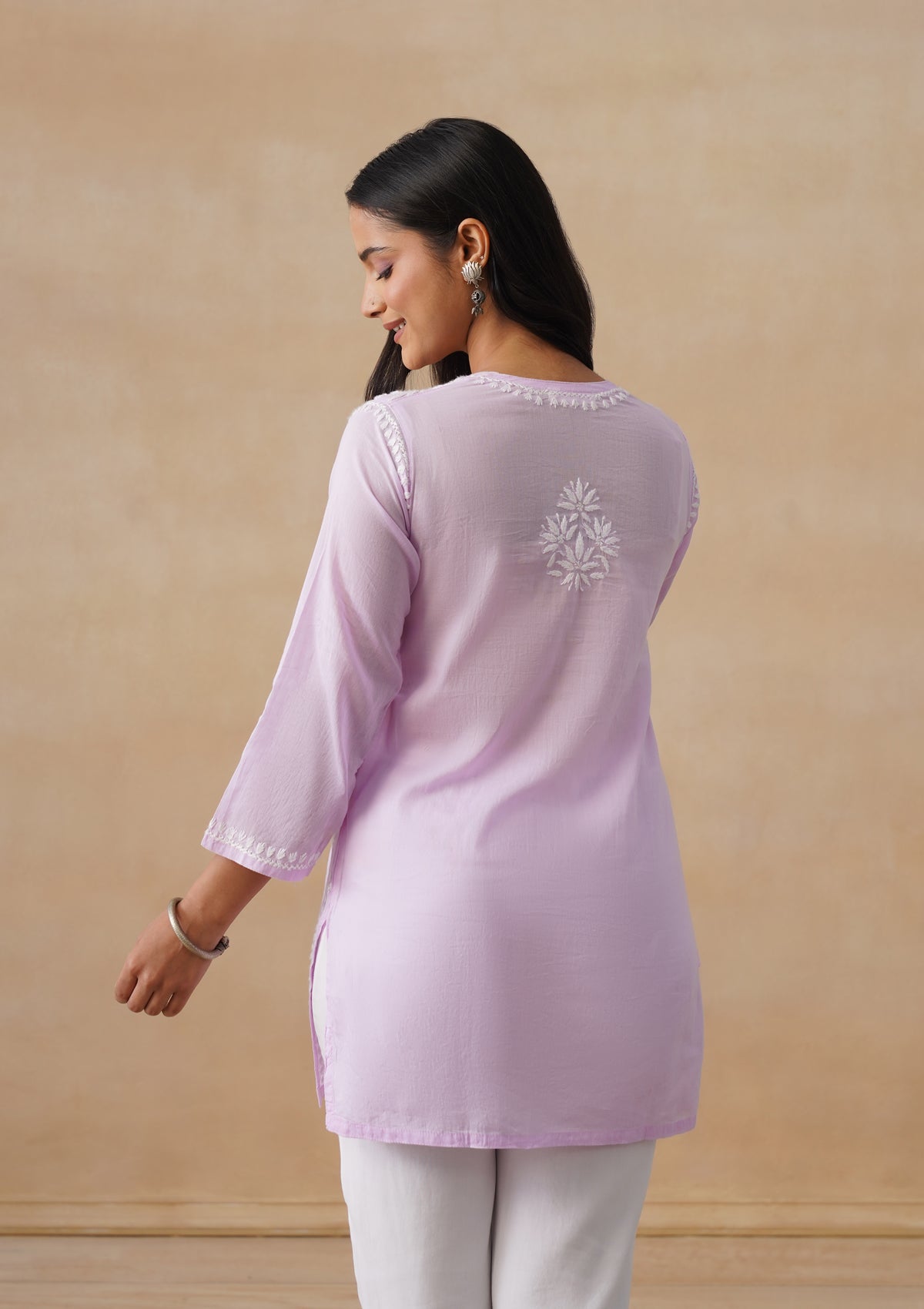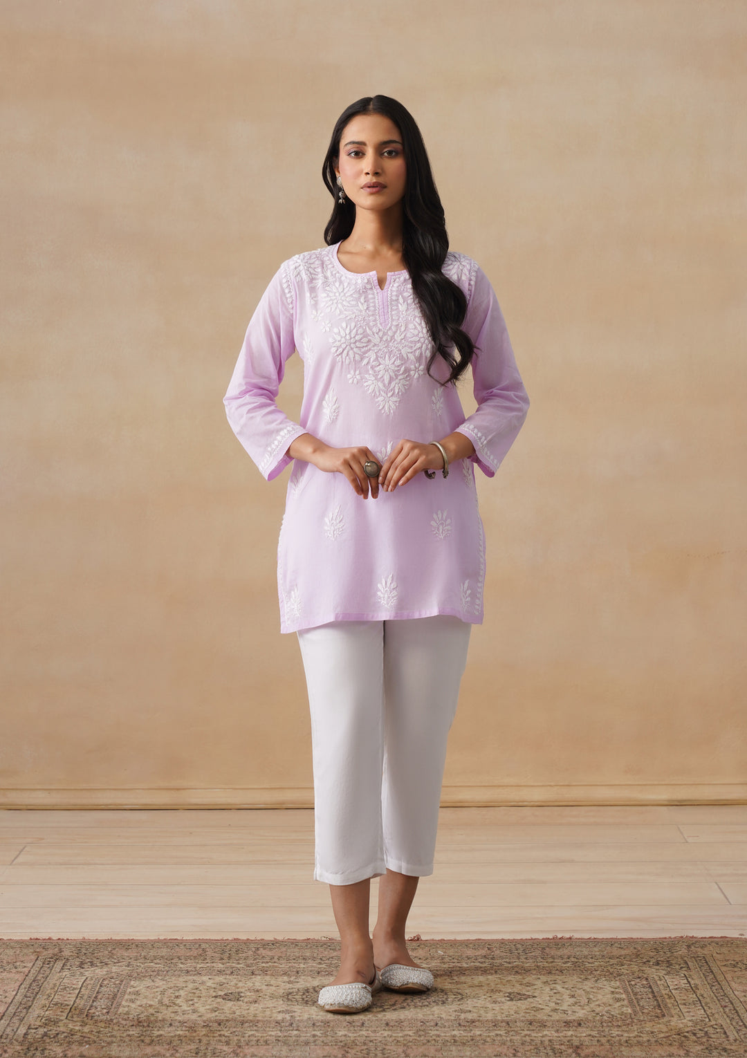 HOC Cotton Chikankari Solid Women's Short Kurta - Lavender